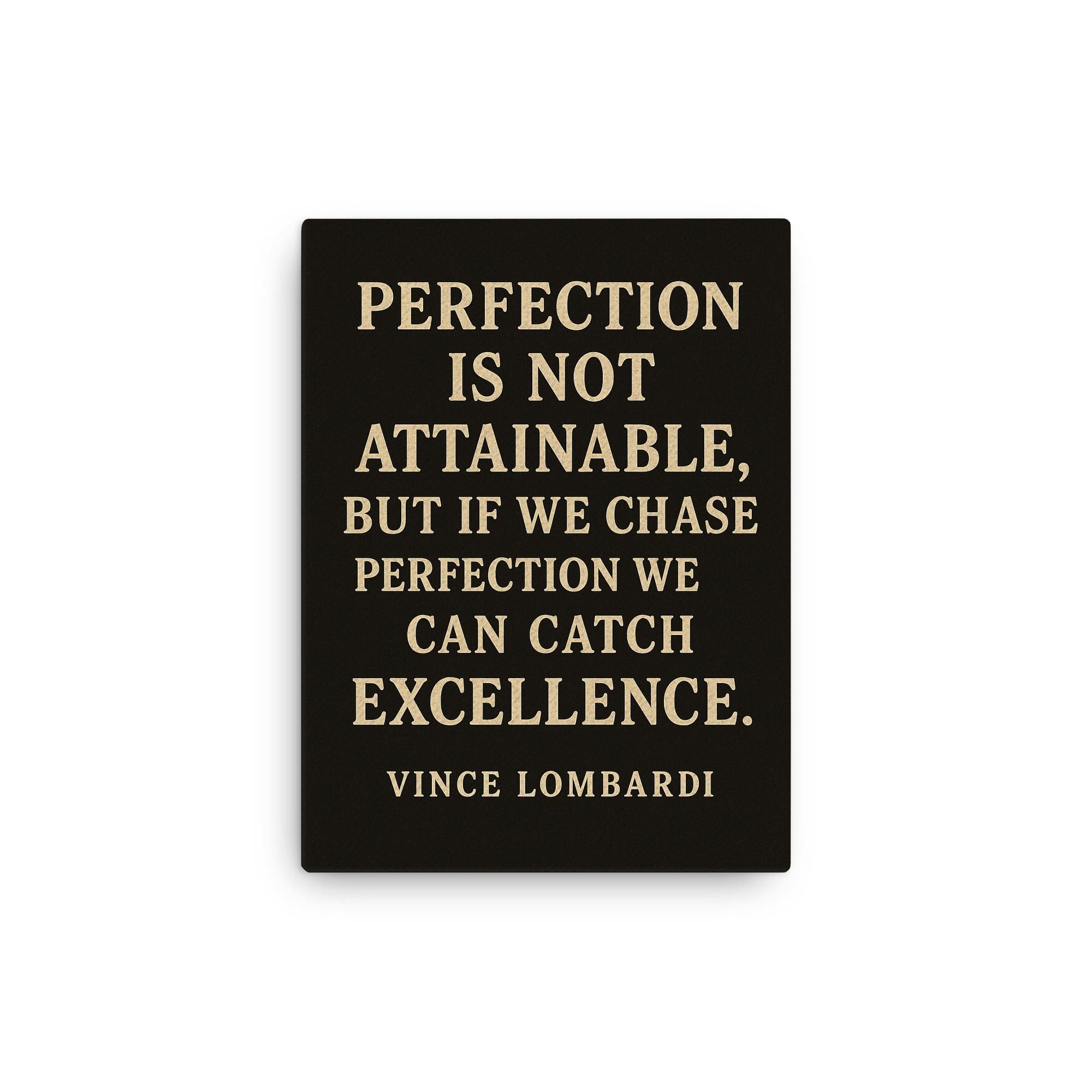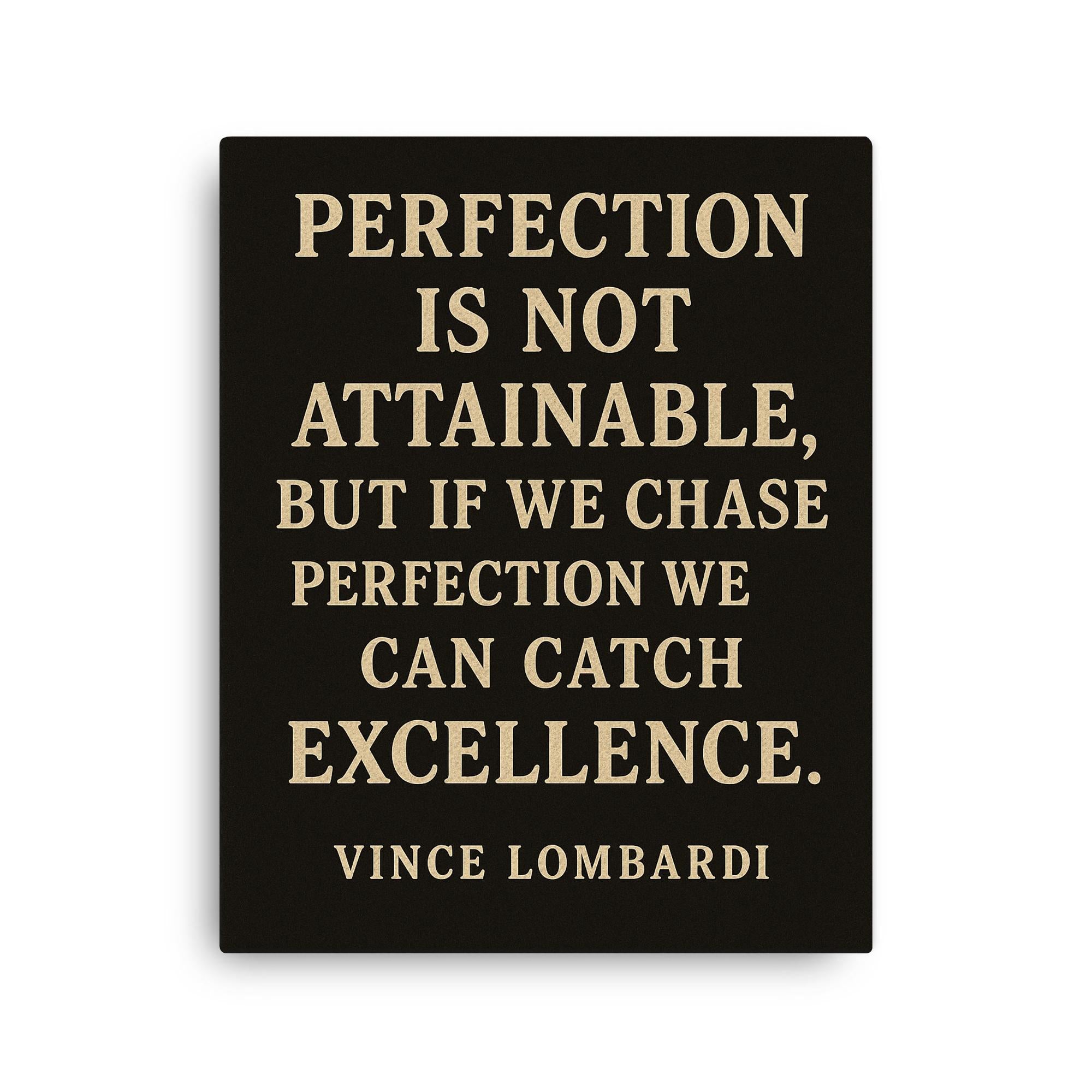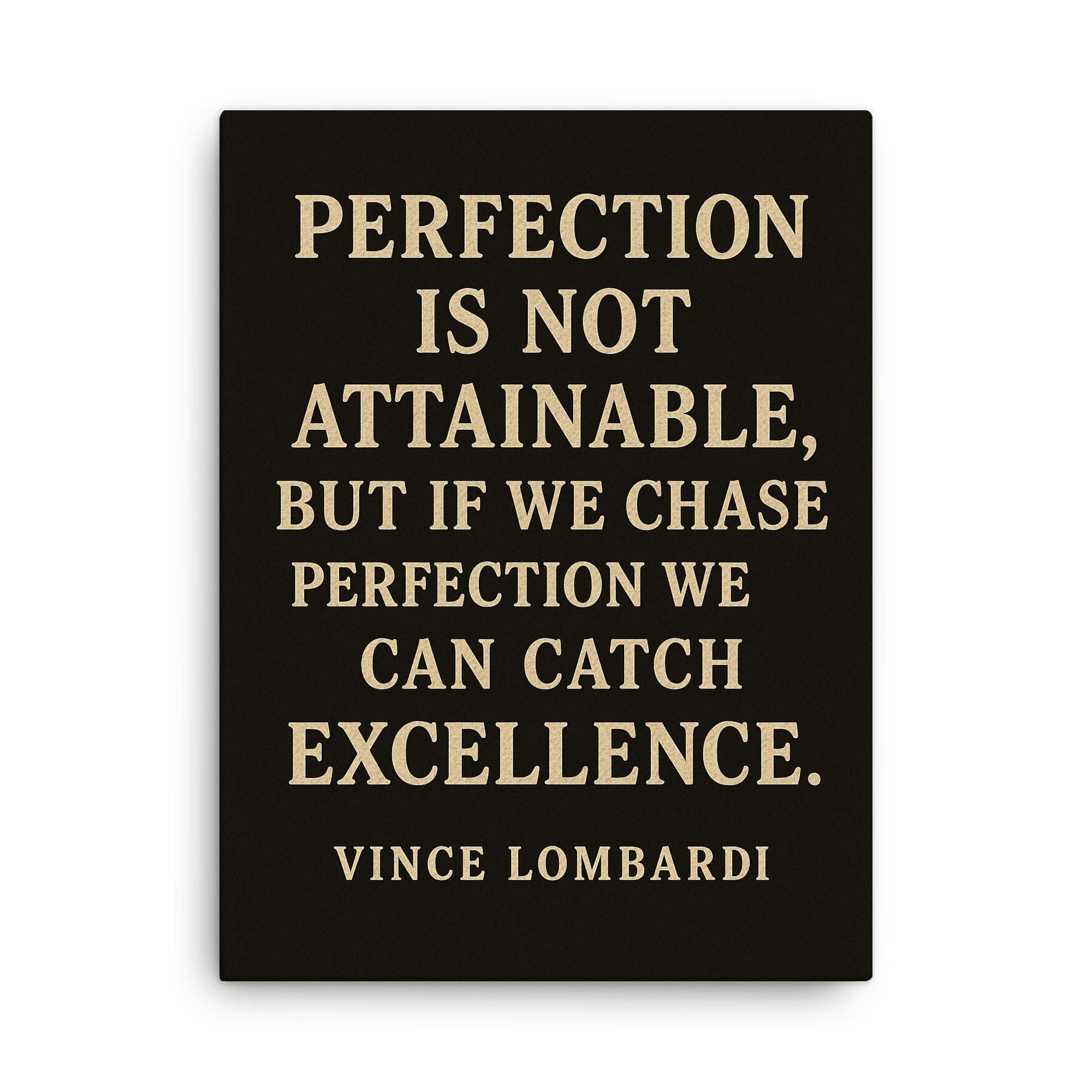 Elevate your space—and your mindset—with this powerful canvas print, featuring the inspiring message: Perfection is not attainable but if we chase perfection we can catch excellence.
