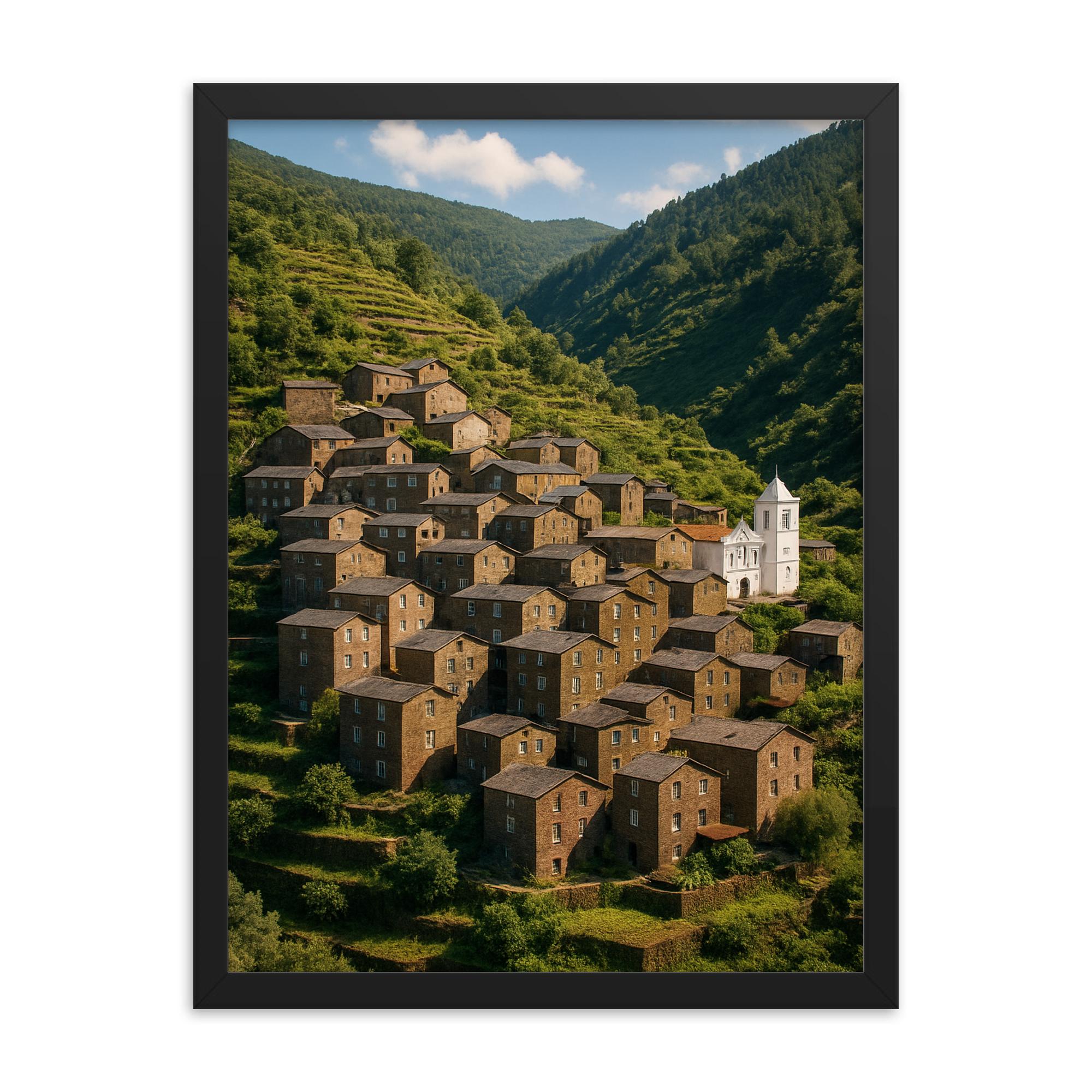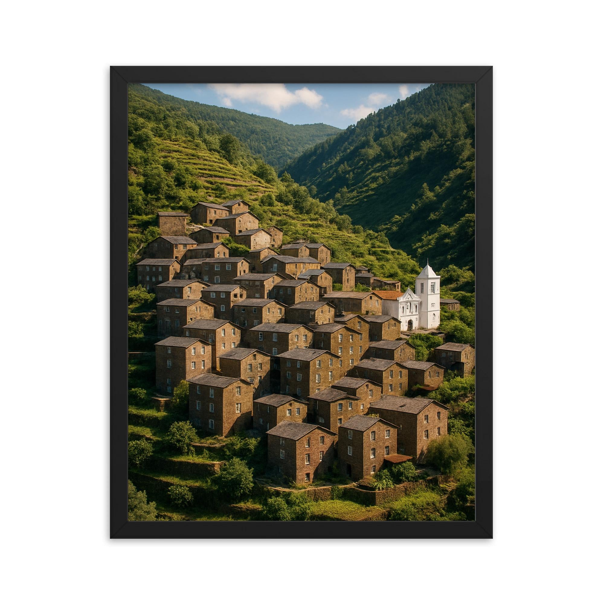 Elevate your living space with the timeless charm of this framed print featuring Piodao Schist Village, Portugal—an enchanting piece of wall art that invites serenity and cultural richness into any room.