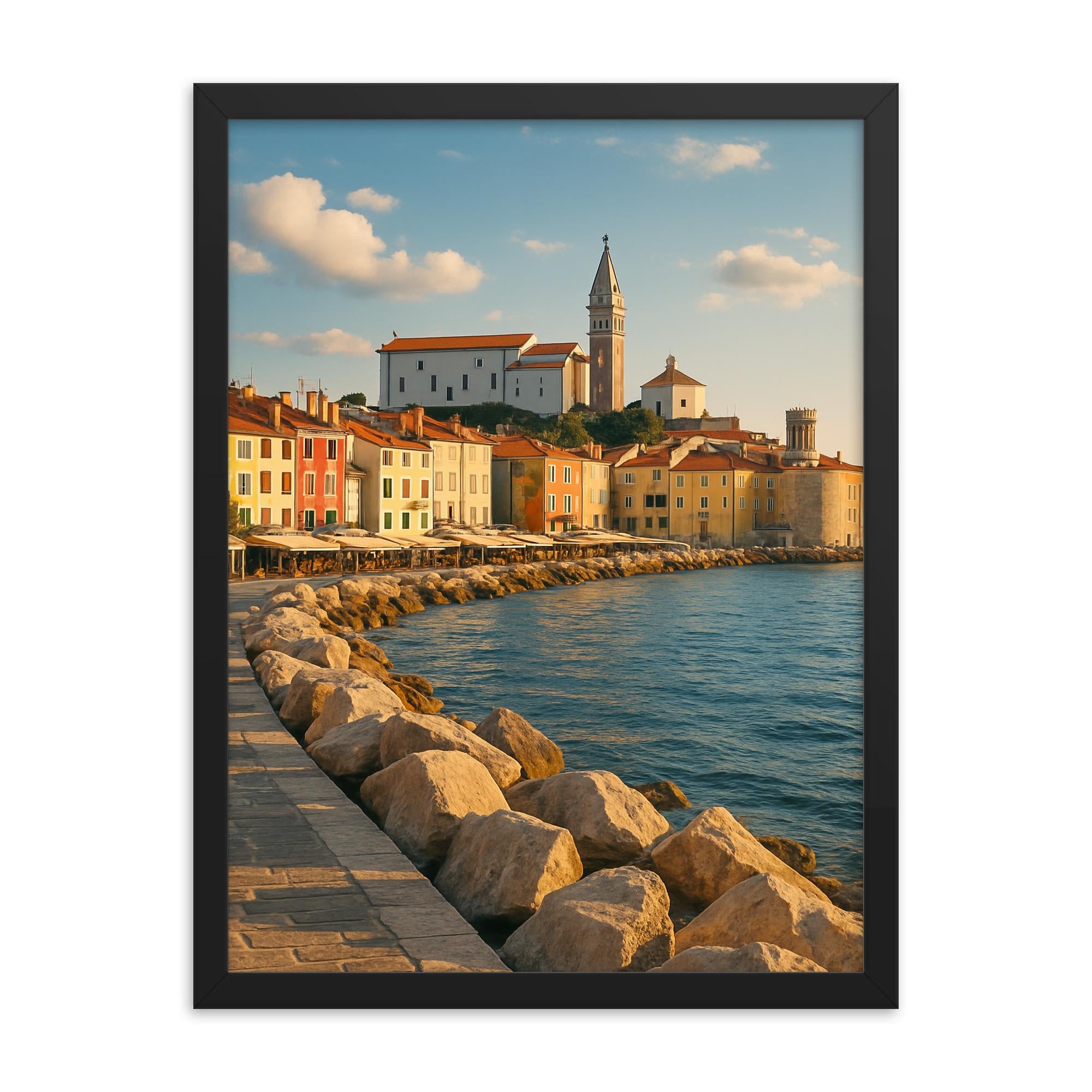 Transform your space with the timeless charm of the Piran Old Town Seafront Slovenia framed print, a stunning piece of wall art that brings coastal elegance and European heritage right into your home or office.