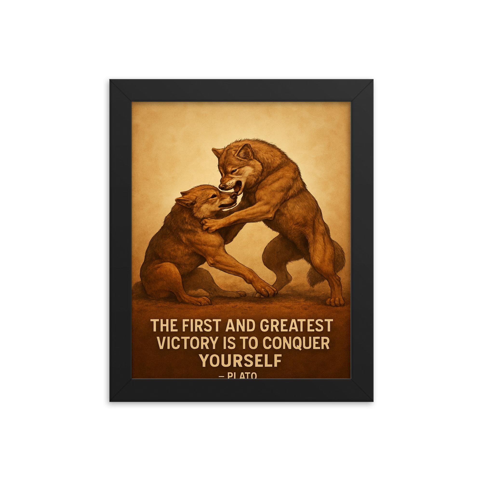 Introducing our exclusive framed wall art featuring the iconic Plato quote about conquering yourself—a daily reminder that real victories begin within. Perfect for any home, office, or personal gym, this framed print inspires focus, grit, and personal growth each time you see it.