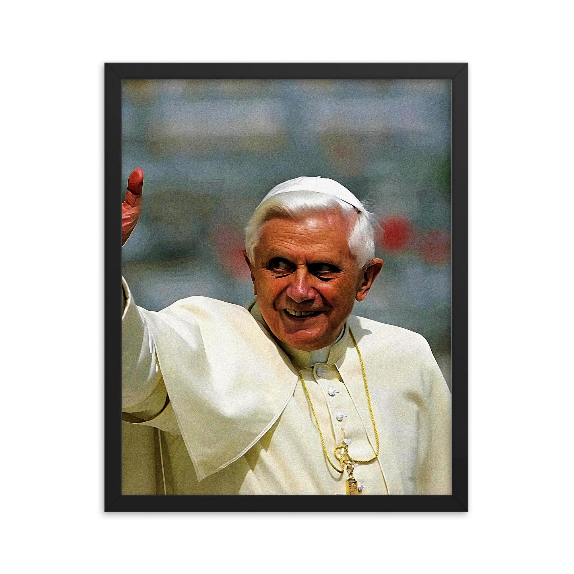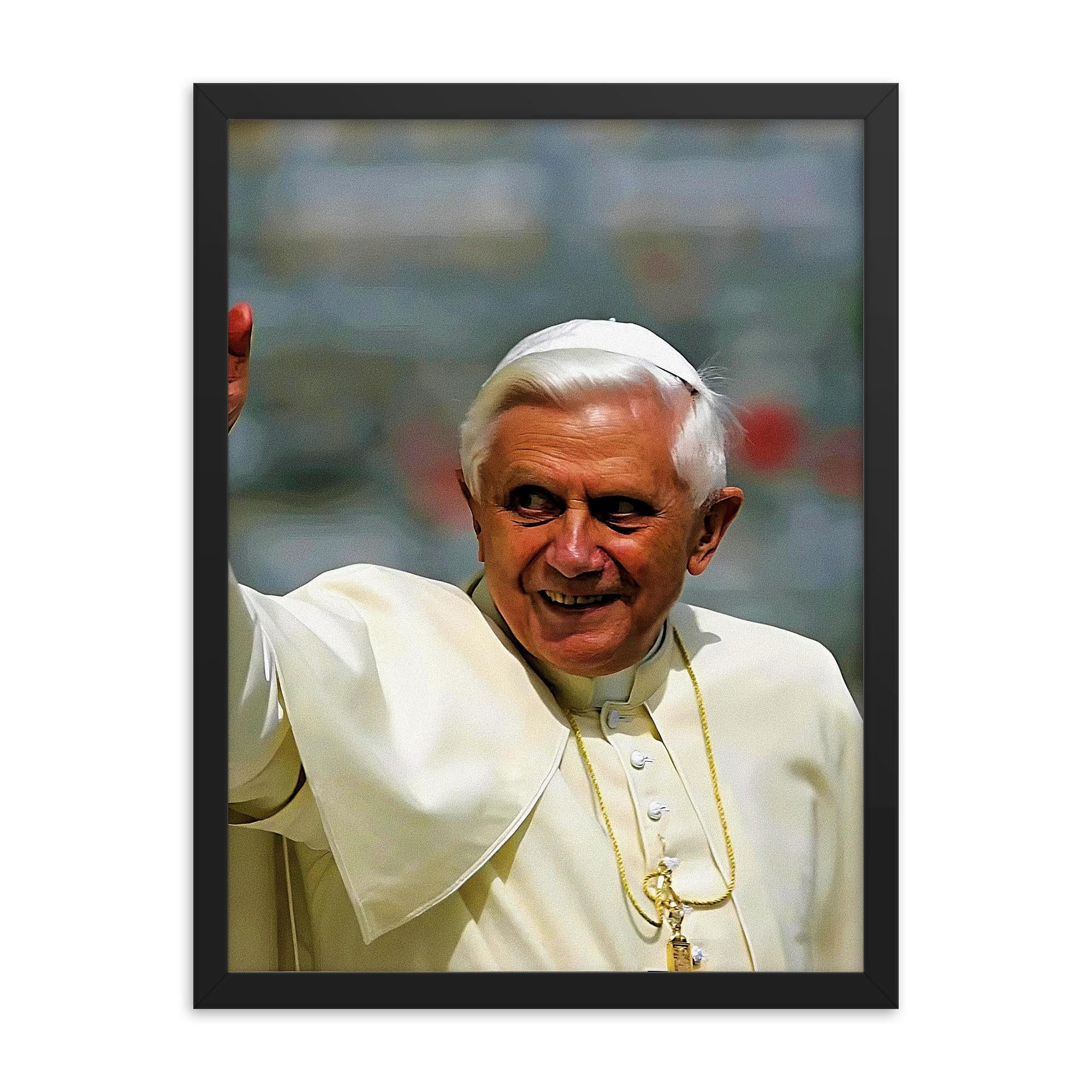 A timeless Pope Benedict XVI print that makes a uniquely thoughtful gift. Each framed print is carefully made by hand using high-quality textured and fade-resistant printing paper, for a matte finish that looks satisfyingly authentic.