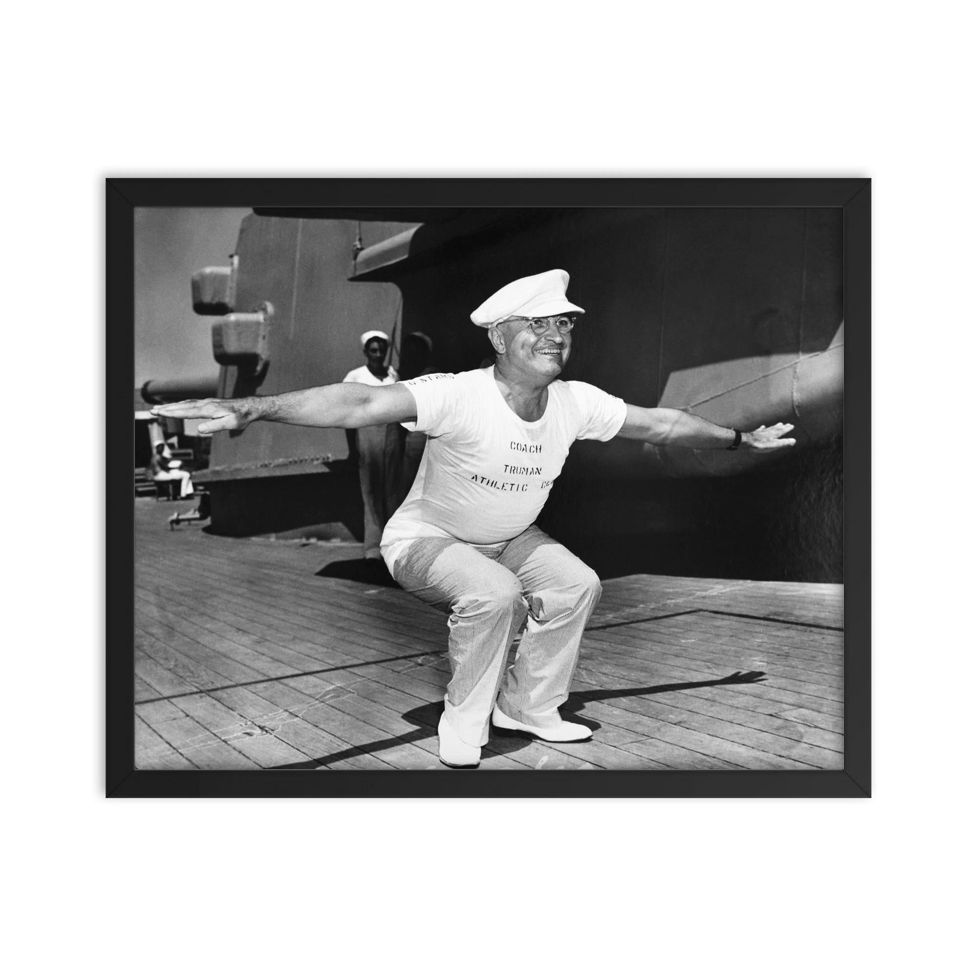 Elevate your space with a striking piece of history — the framed print of President Truman Leading Exercises on the USS Missouri, 1947.