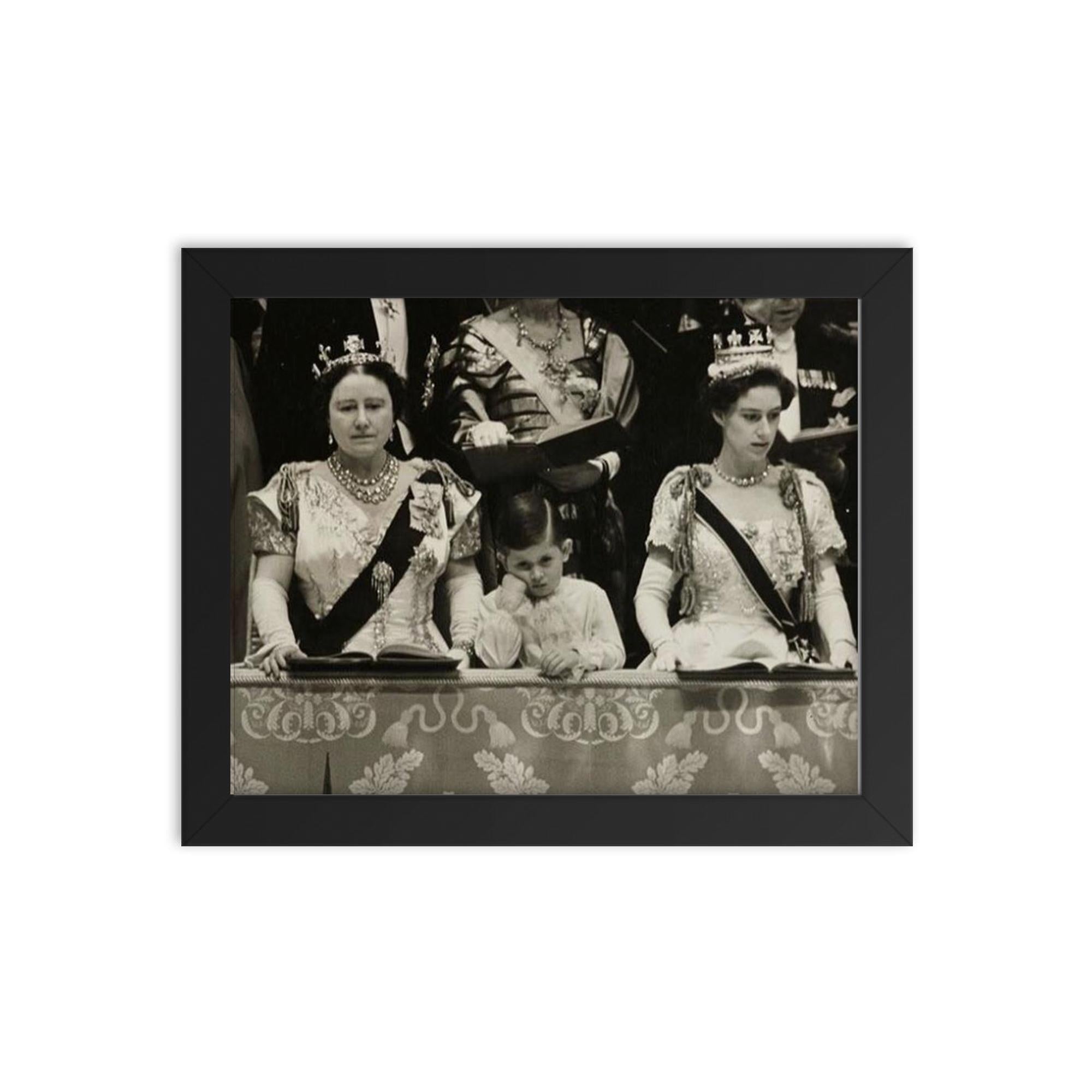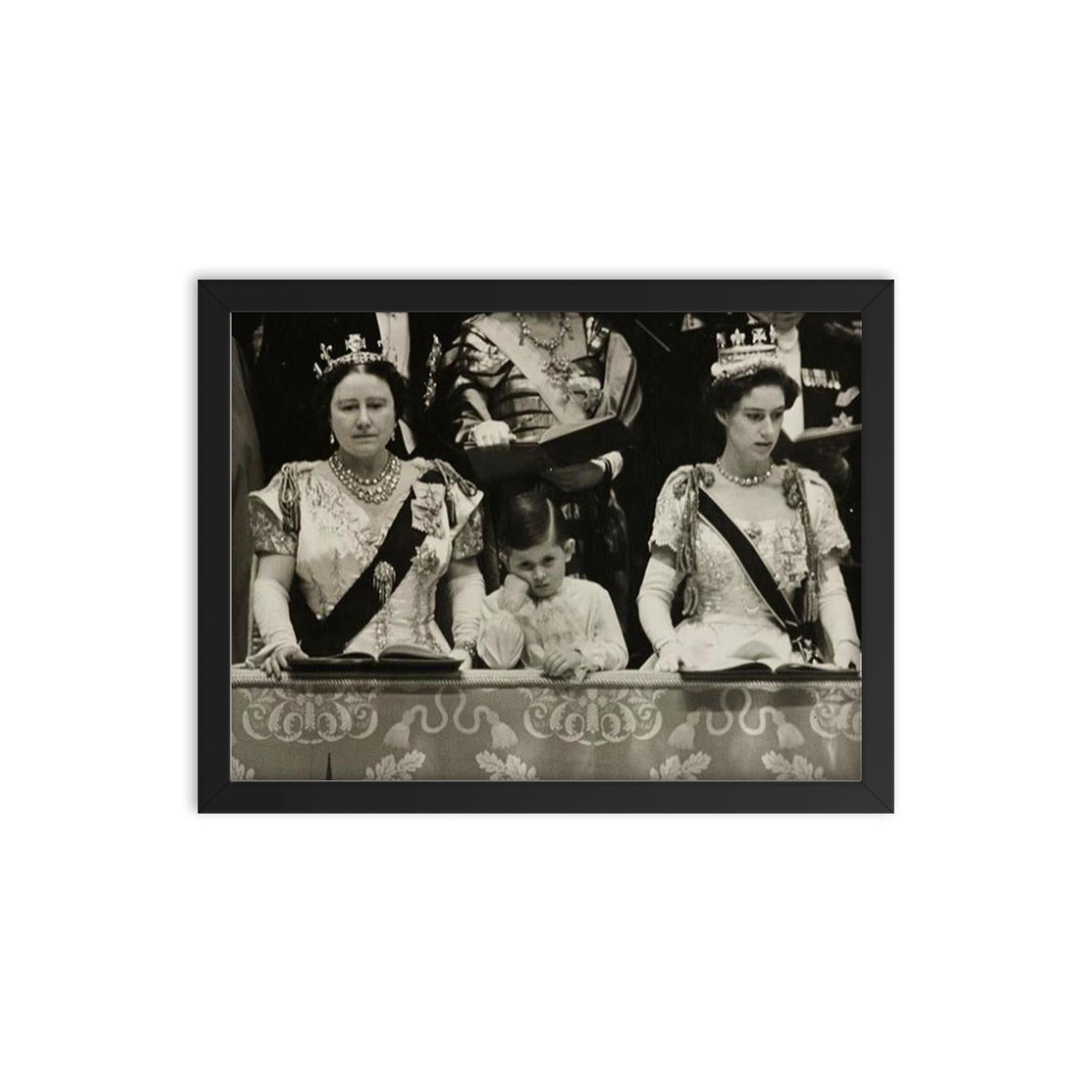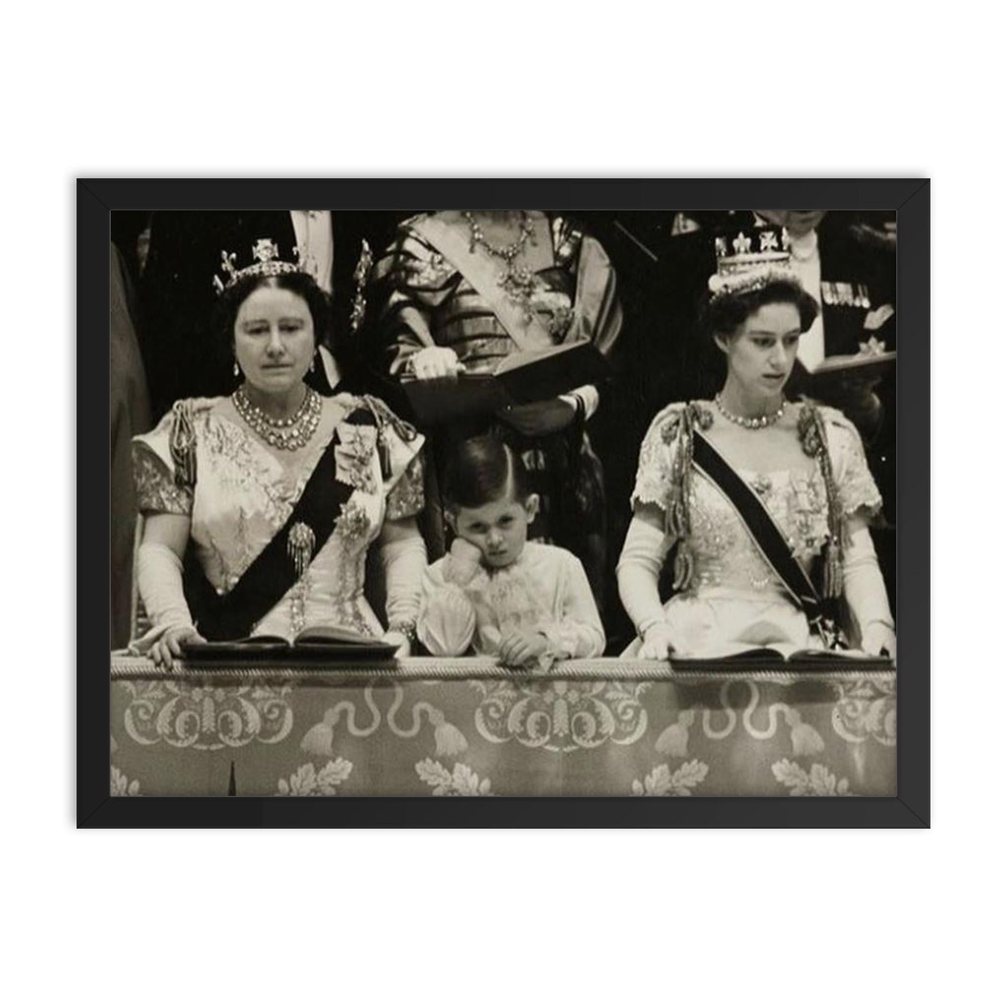 Step into history with this elegant framed print: Prince Charles at Queen Elizabeth’s Coronation with Queen Mother and Princess Margaret, 1953. Capture the essence of British royalty and the timeless bond between generations—perfect for anyone passionate about Royal Family memorabilia, vintage photography, or classic British culture.