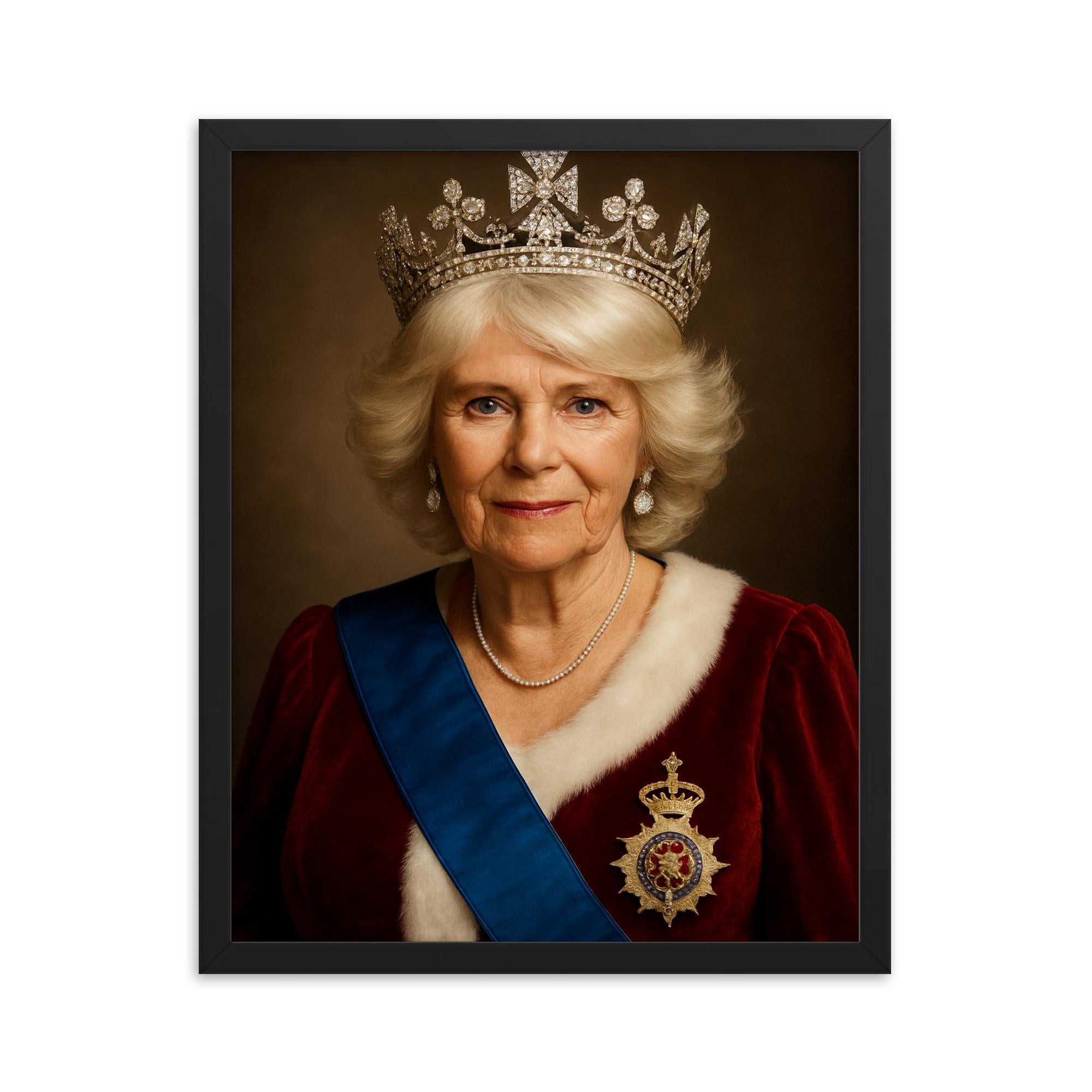 Transform your walls and celebrate timeless elegance with this Queen Camilla framed print. Order now to own a piece of distinguished art that combines royal allure with unmatched craftsmanship.