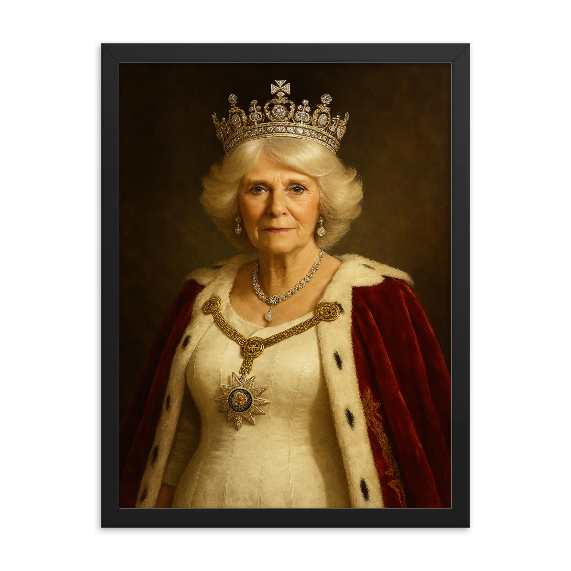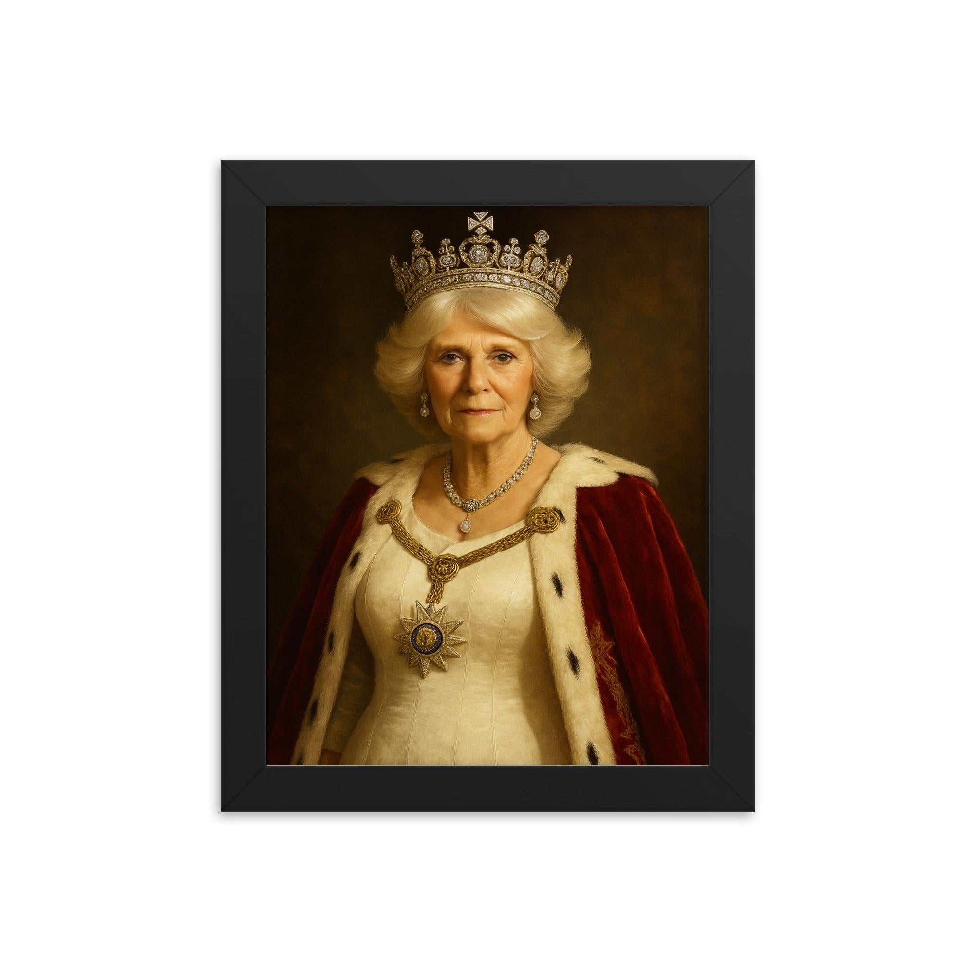 Own a masterpiece that commands attention and admiration every time someone steps into your room. Add the Queen Camilla Regal Portrait framed print to your cart now and experience the allure of regal wall art with unmatched quality and design.