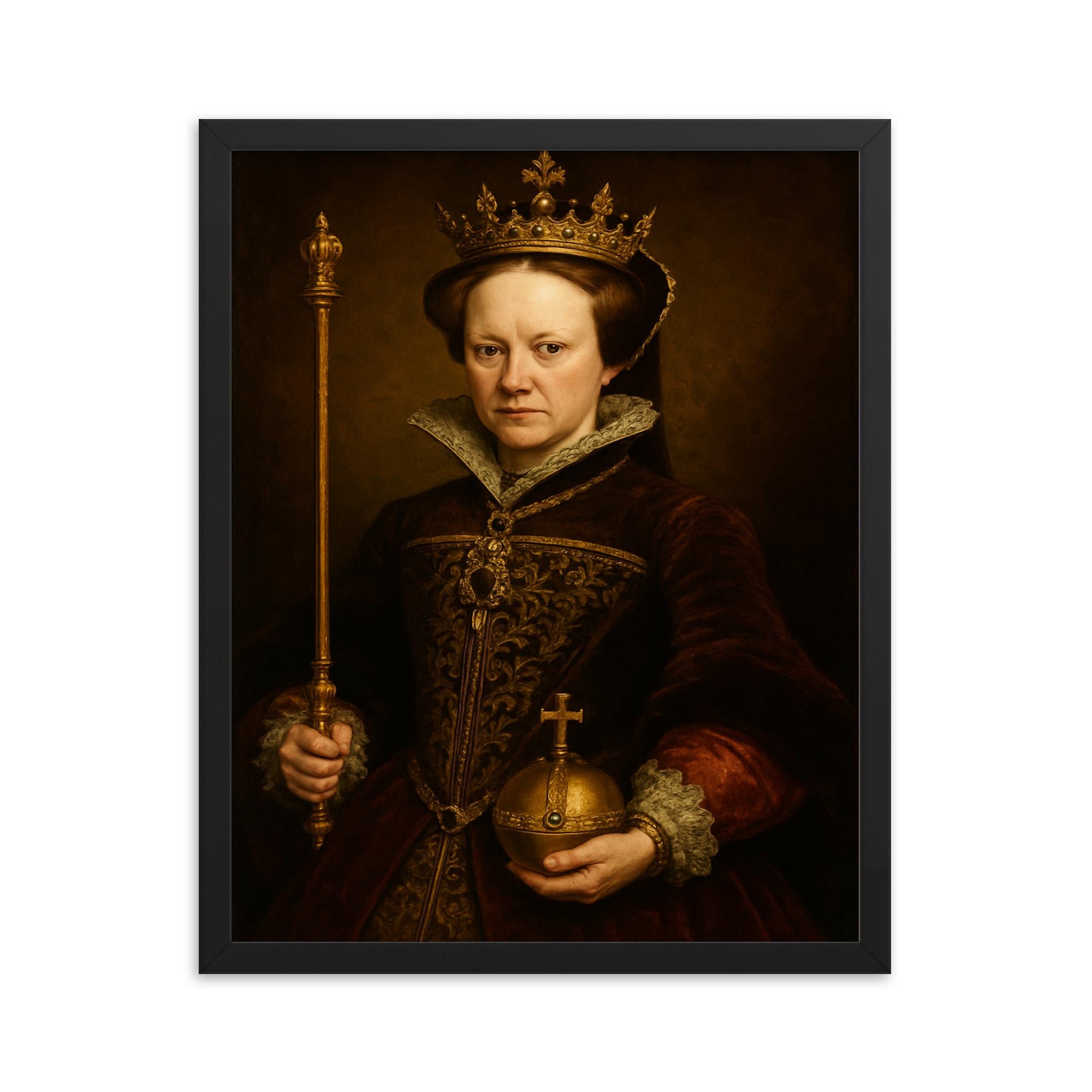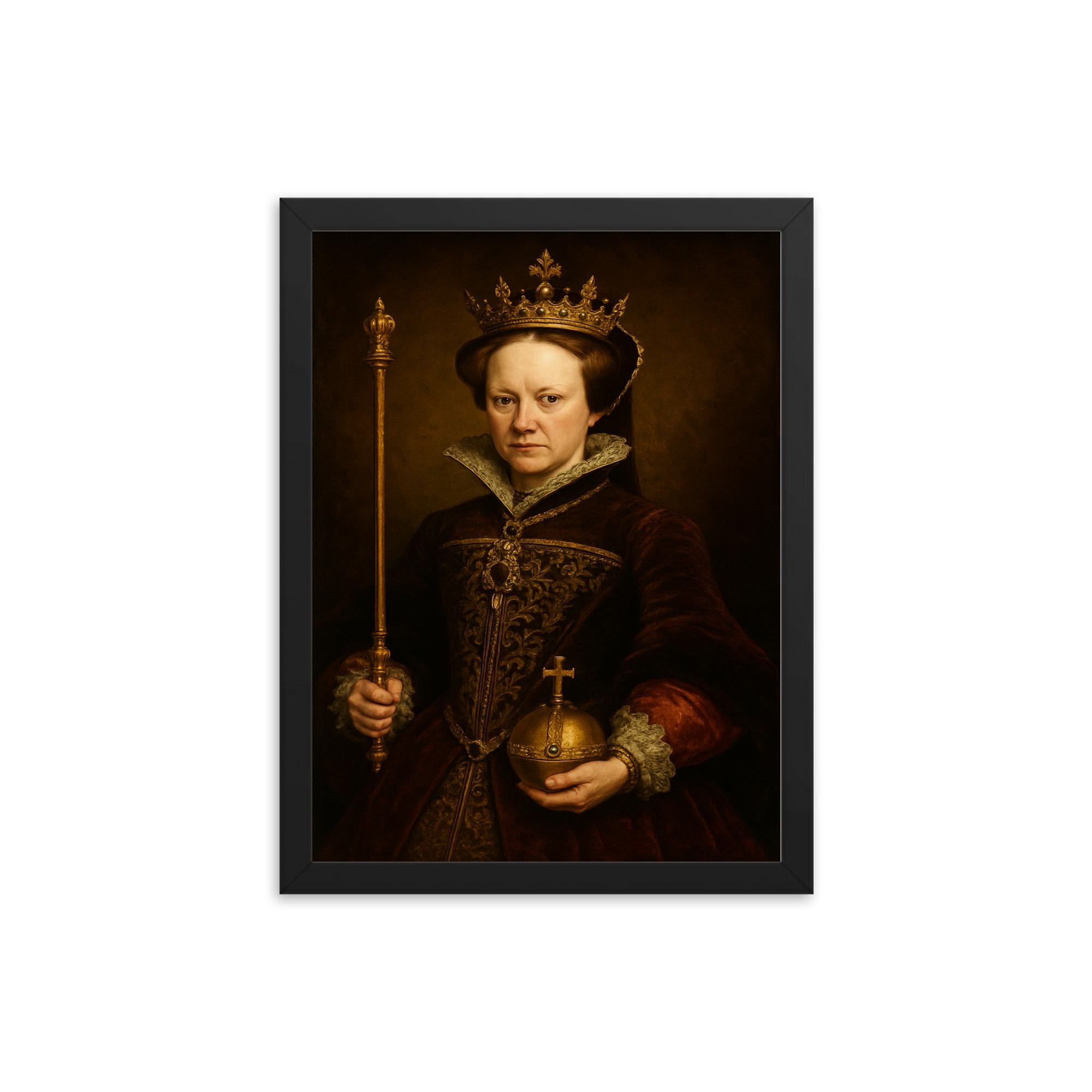 Elevate your surroundings with the unmistakable presence of Queen Mary I of England—order now and transform your wall into a throne room of style and grace.