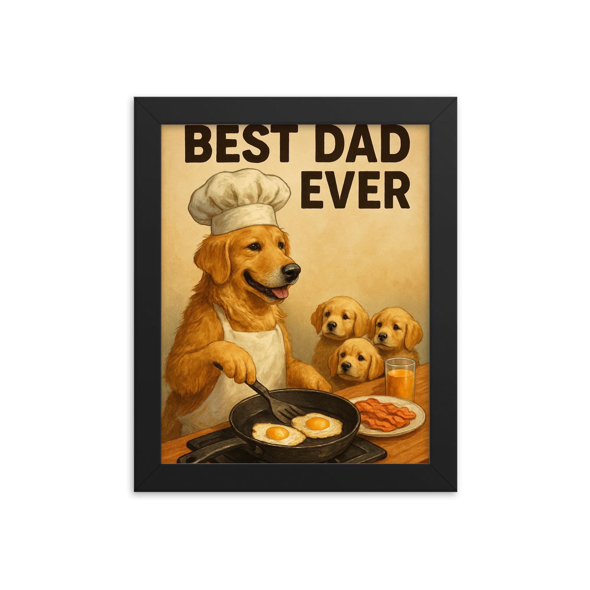 Celebrate the heart and humor of Dad with a framed print that’s guaranteed to bring a smile to every father’s face. Our “Best Dad Ever: Golden Retriever Chef Making Breakfast for Puppies” wall art is the perfect gift for Father’s Day, dog lovers, and anyone who appreciates playful, memorable décor.