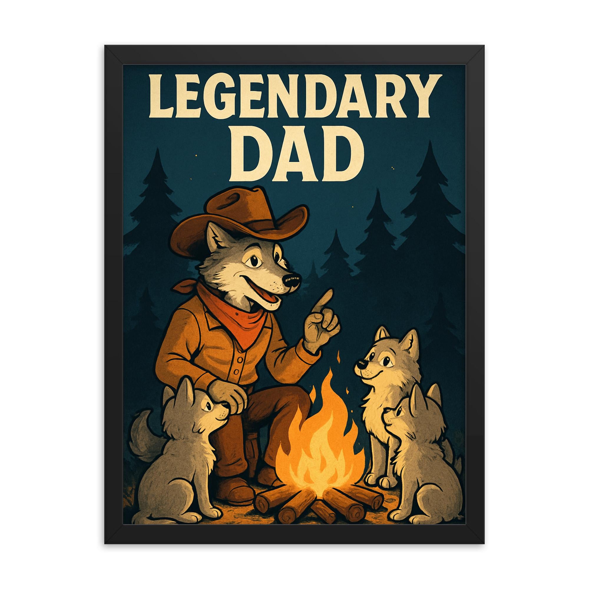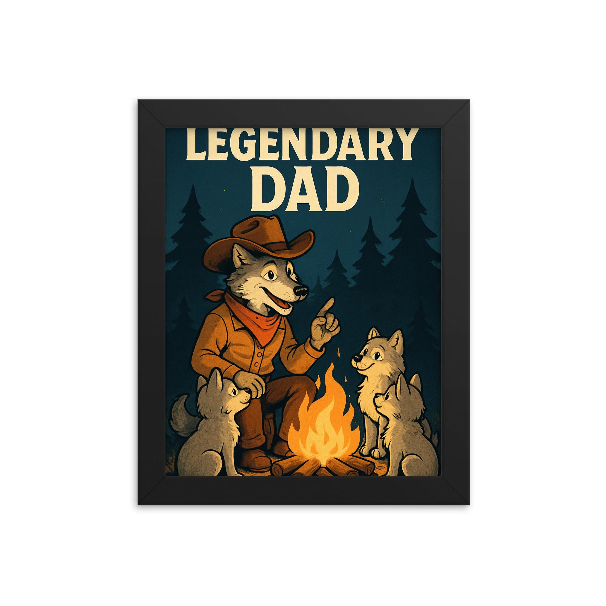 Celebrate Father’s Day in unforgettable style with our framed wall art: the legendary "Legendary Dad" Wolf, hilariously dressed as a cowboy, teaching his adorable pups around a campfire. This funny and heartwarming print is the perfect way to show Dad he’s a real-life hero—equal parts wise, wild, and wonderfully one-of-a-kind.