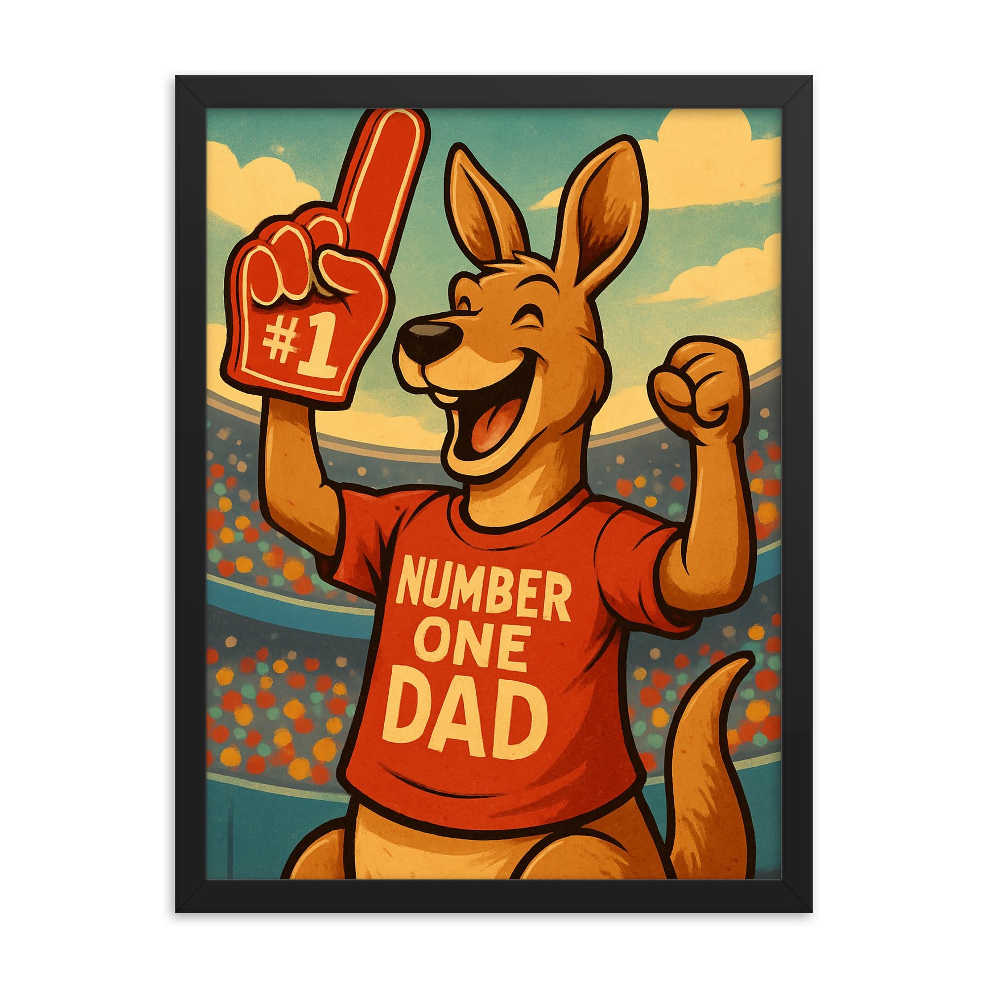 Whether you’re celebrating your dad, your partner, or any father figure in your life, this fun and cheerful poster puts a playful twist on fatherhood. Featuring a spirited kangaroo decked out as the ultimate sports fan, it’s a standout addition to any home, office, or man cave.