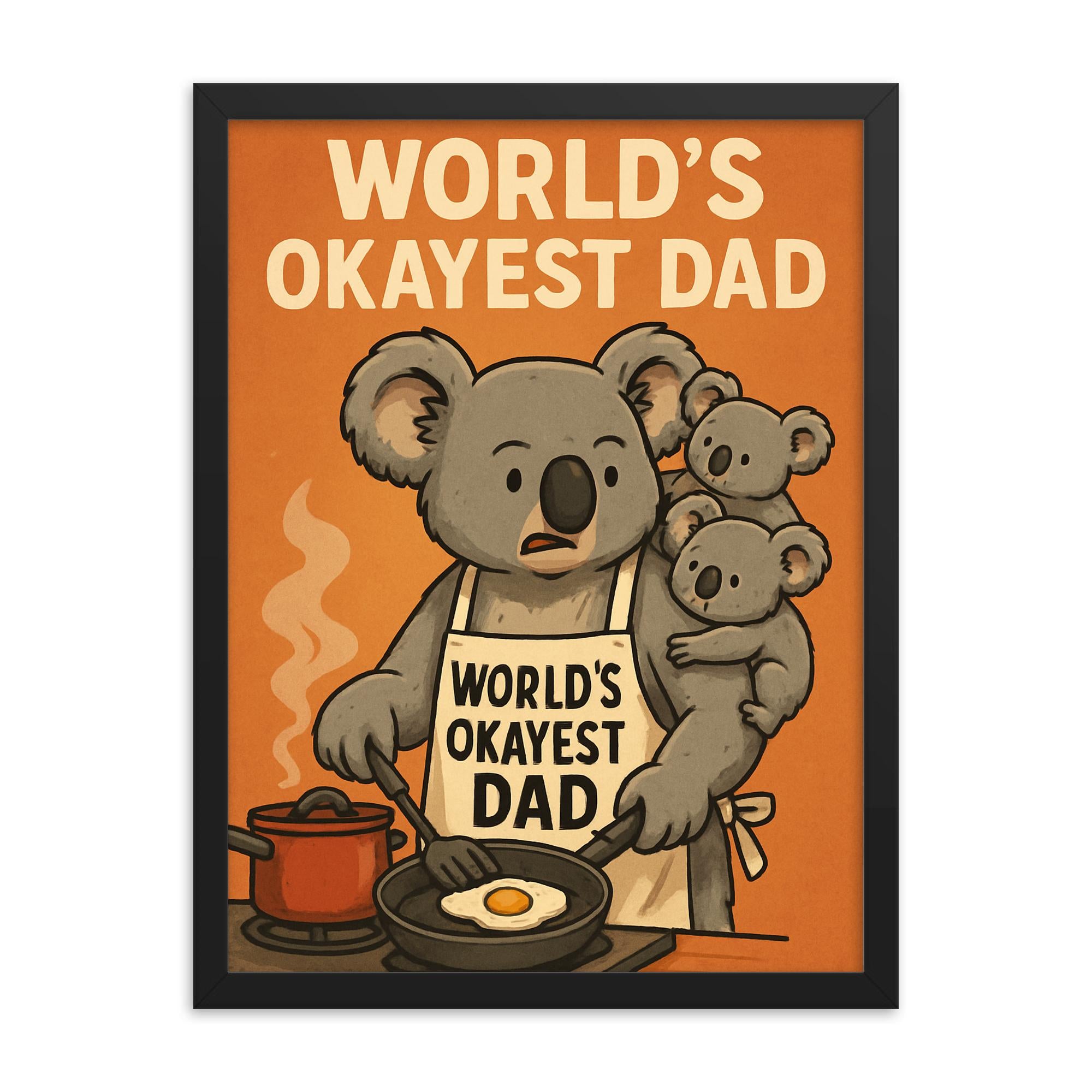 Celebrate Father’s Day with the kind of gift that delivers instant laughs, big smiles, and that special warm-and-fuzzy feeling—every single day. This framed wall art featuring the playful phrase “world’s okayest dad” paired with a hilarious koala cooking scene, is the ultimate tribute to every lovable, multitasking dad out there.