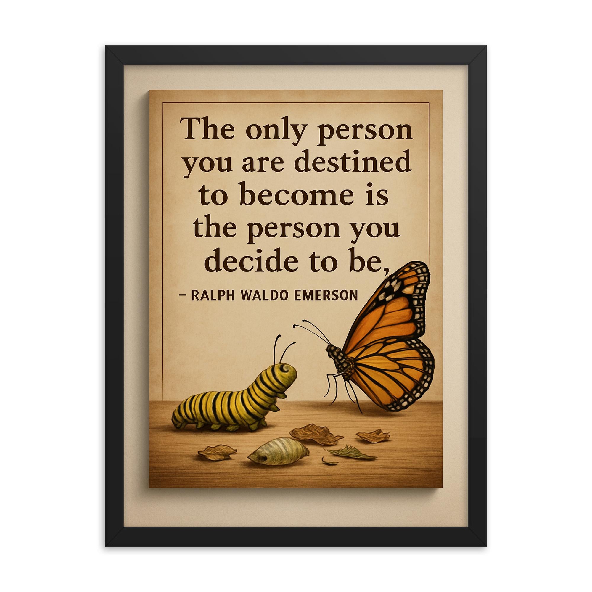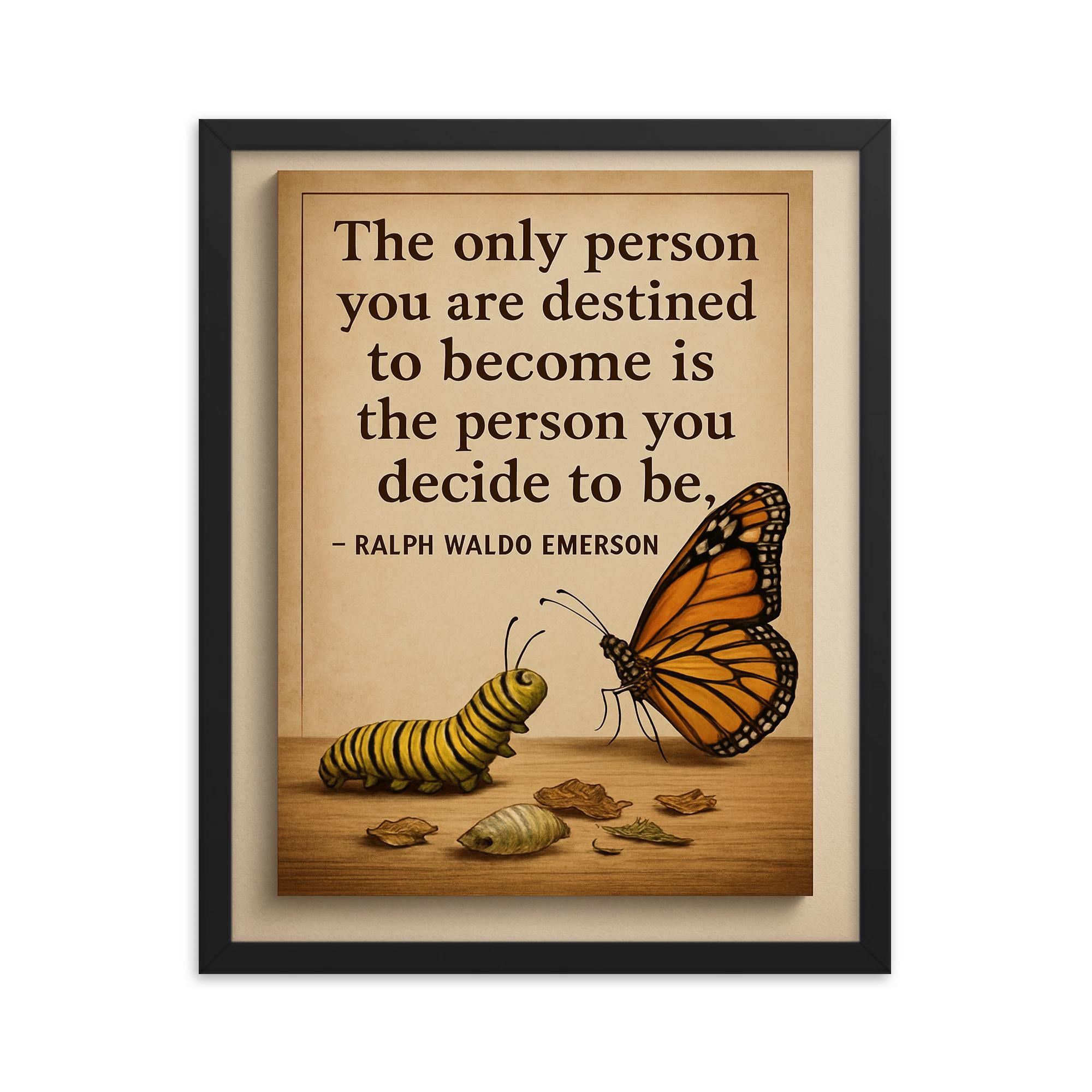 Ralph Waldo Emerson Inspirational Quote Framed Print – Motivational Wall Art, "The Only Person You Are Destined to Become," Home Decor Gift