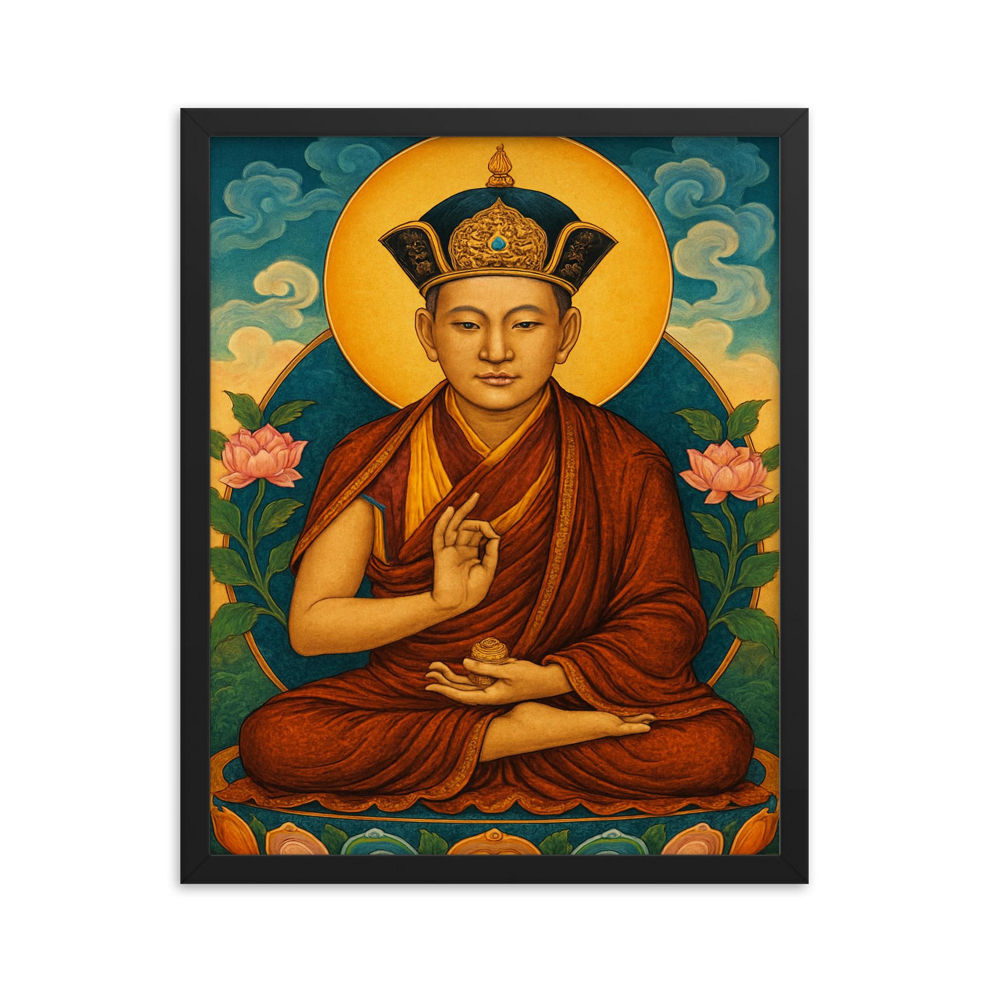 This framed wall art features a high-quality print of Rangjung Rigpe Dorje, a revered figure whose legacy inspires peace and wisdom. Perfect for meditation rooms, living spaces, or offices, this artwork offers more than decoration—it invites calm and intention into your environment.