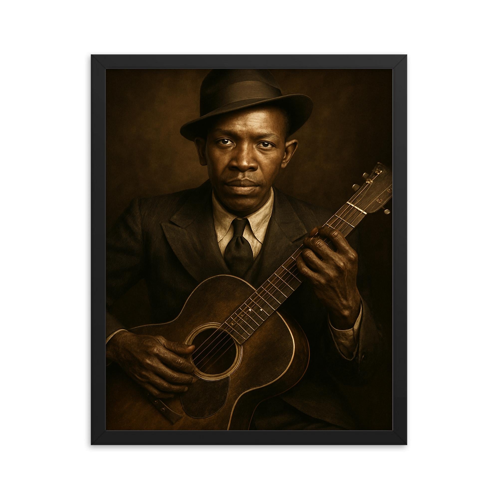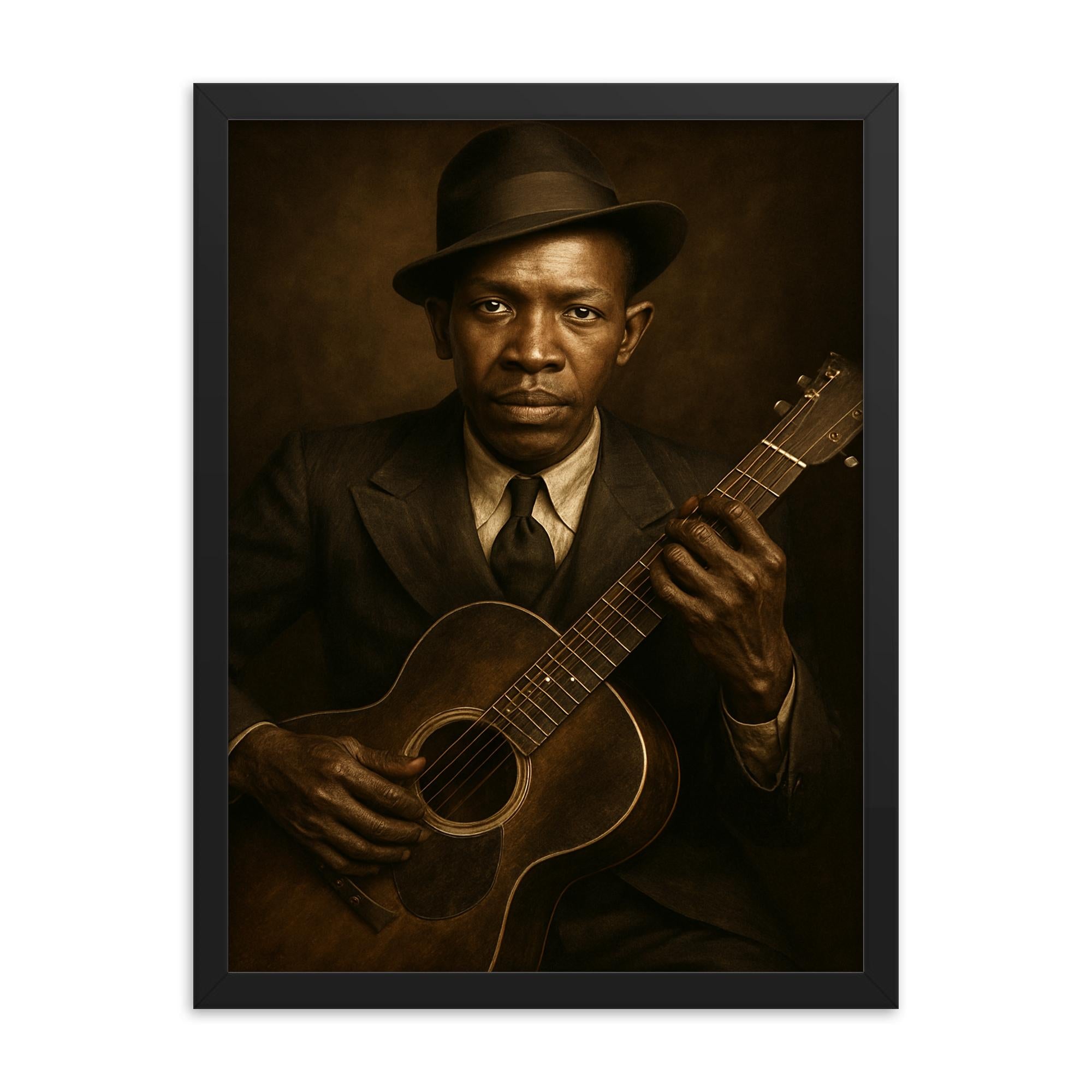 Elevate your interior decor with the Robert Johnson portrait framed print—a lasting tribute delivered ready to display and enjoy. Add it to your cart today and bring legendary blues spirit into your life and home.