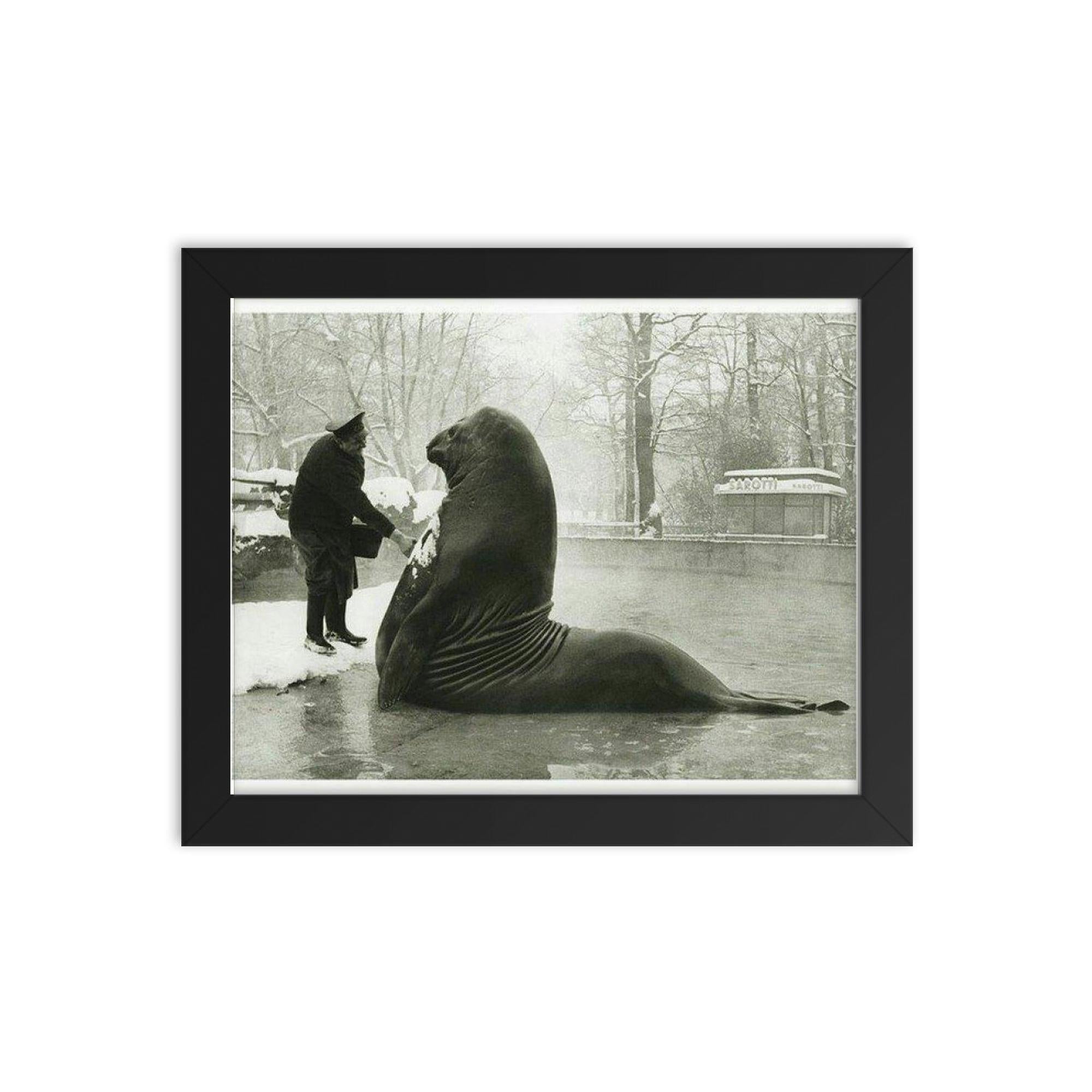 Roland the Elephant Seal Snow Bath 1930 Berlin Zoo Vintage Framed Wall Art Print Unique Wildlife Decor