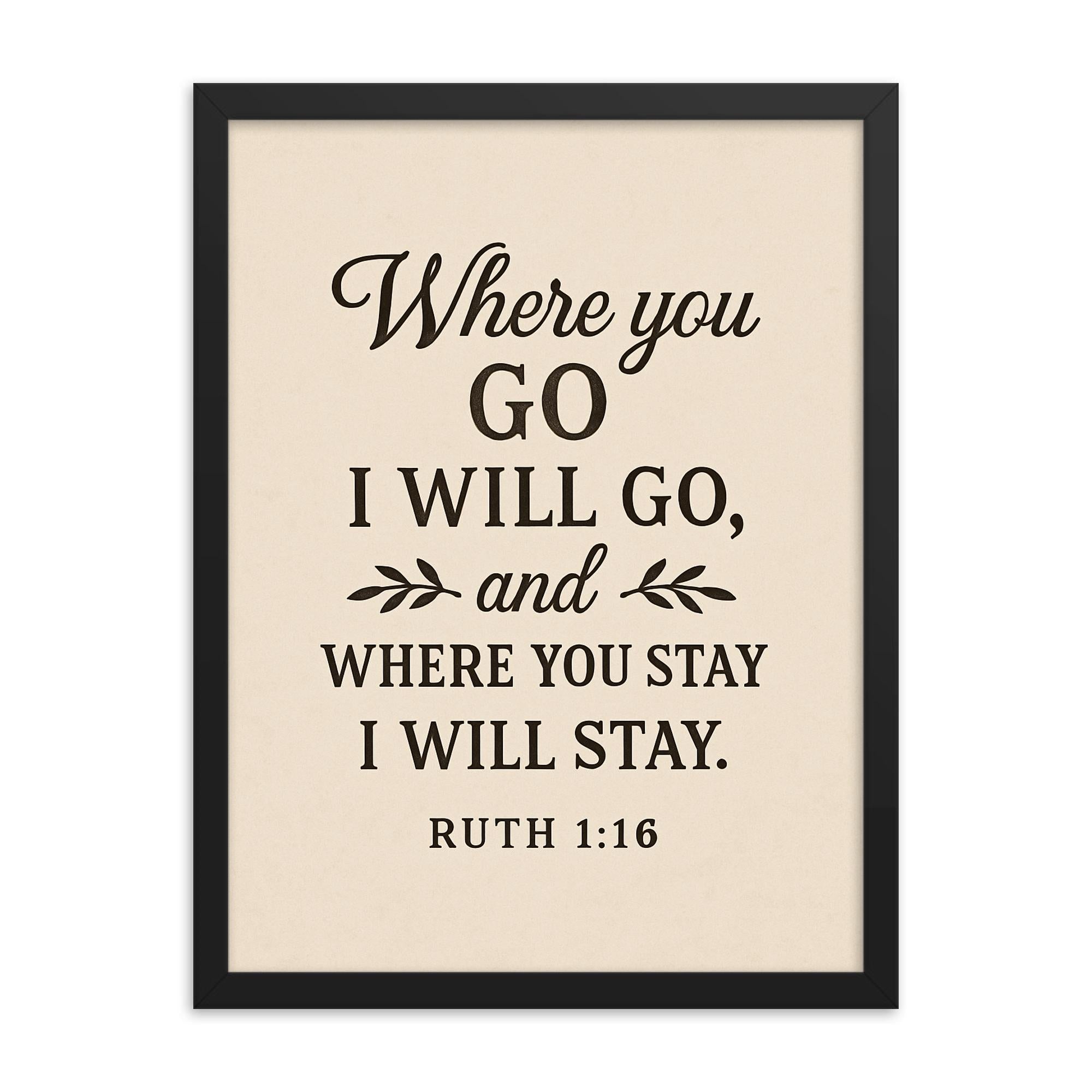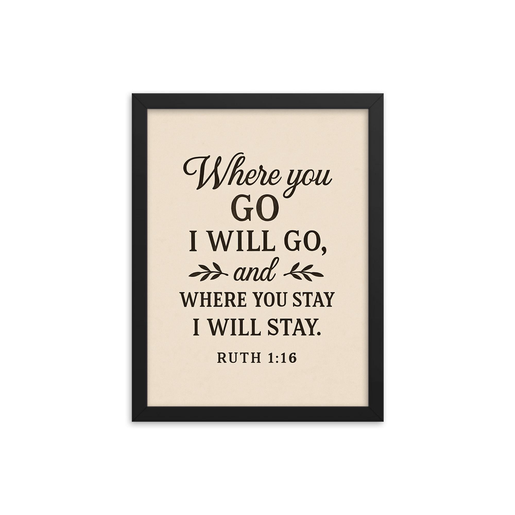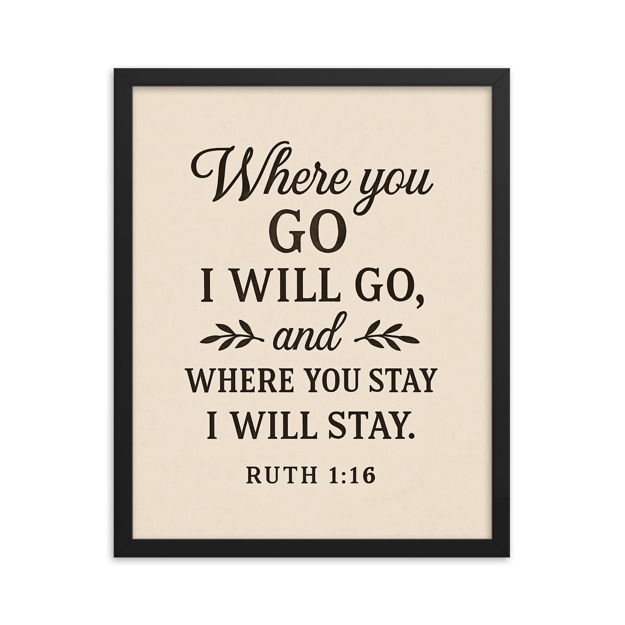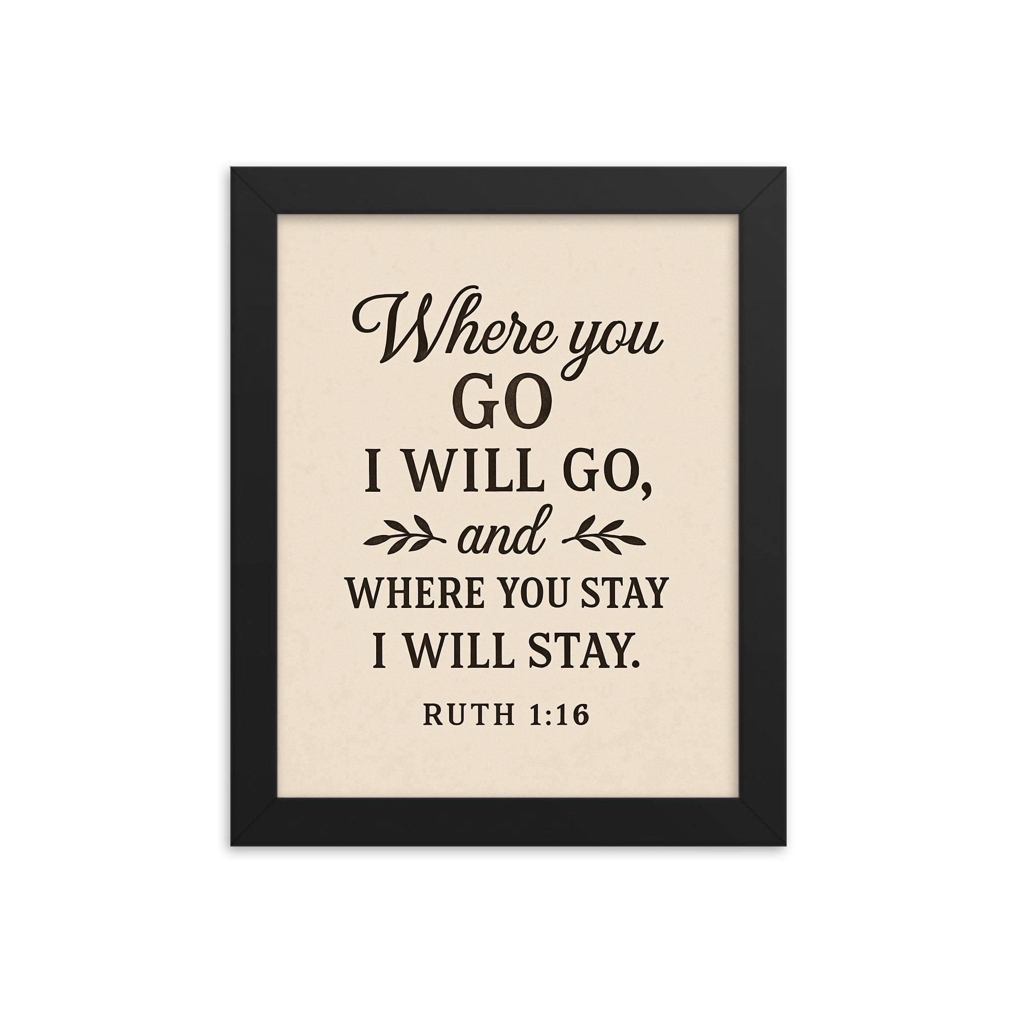 Elevate your space with the timeless inspiration of this beautifully framed print featuring Ruth 1:16 – a heartfelt promise of loyalty and love.
