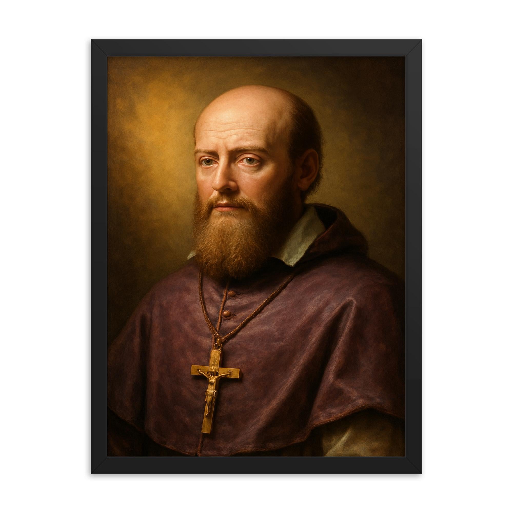 Elevate your space with timeless inspiration through this beautifully framed print of the Saint Francis de Sales portrait—an exquisite piece of wall art designed to bring serenity, elegance, and spiritual warmth to any room.