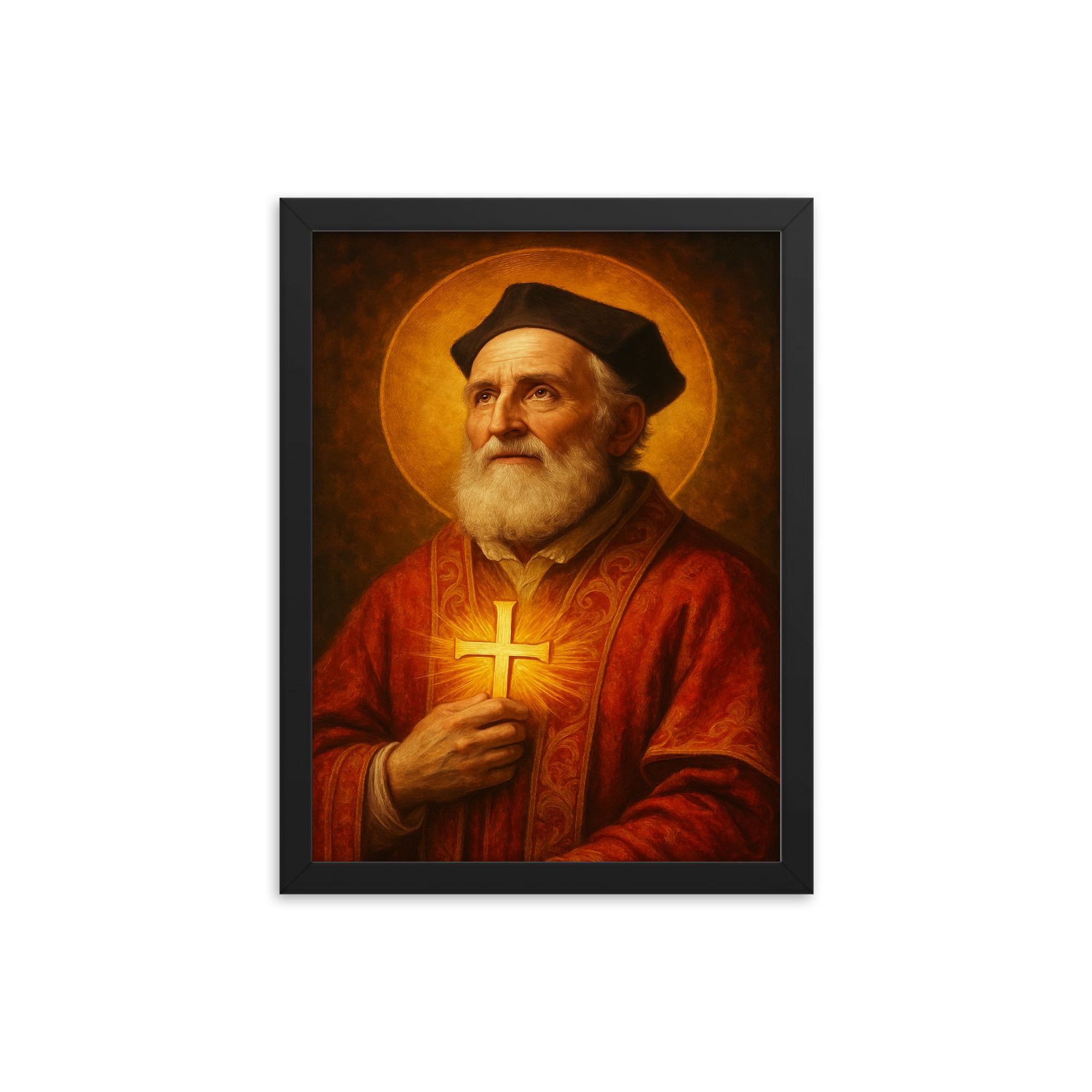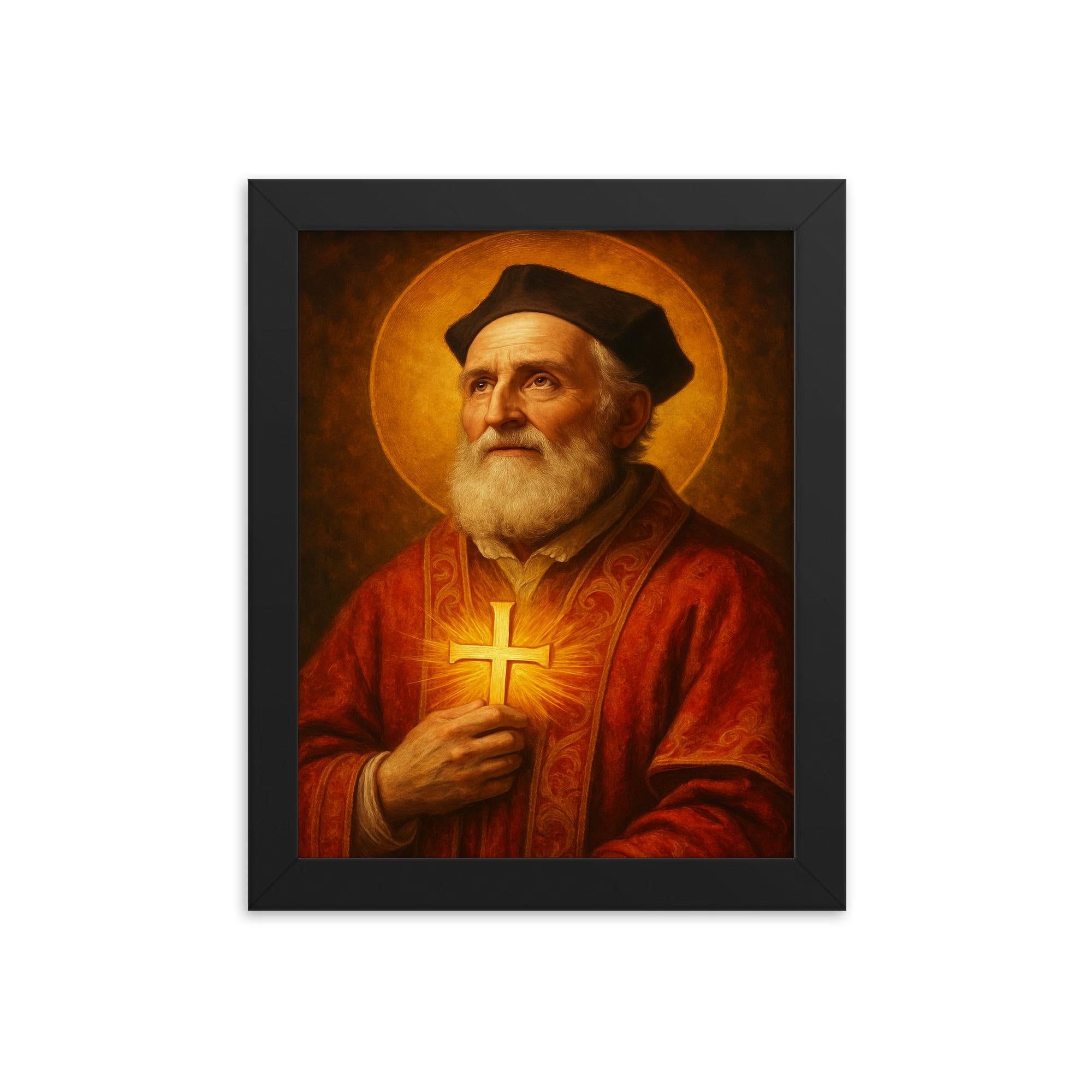 Elevate your living space or sacred corner with this stunning framed print of Saint Philip Neri, a timeless piece of wall art that combines spiritual inspiration with refined craftsmanship.