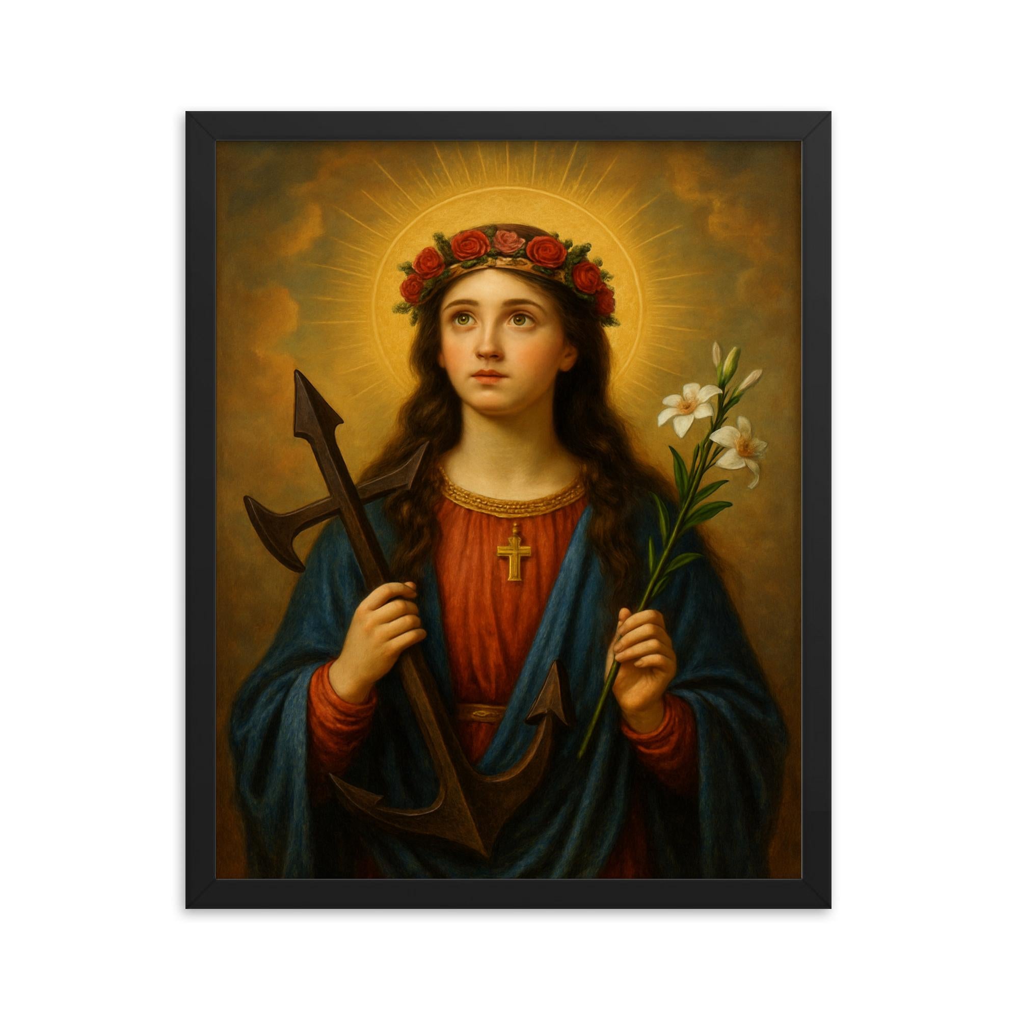 Add a meaningful statement to your walls with this exceptional framed print of Saint Philomena of Rome, and let her story inspire courage, hope, and faith in your everyday life.