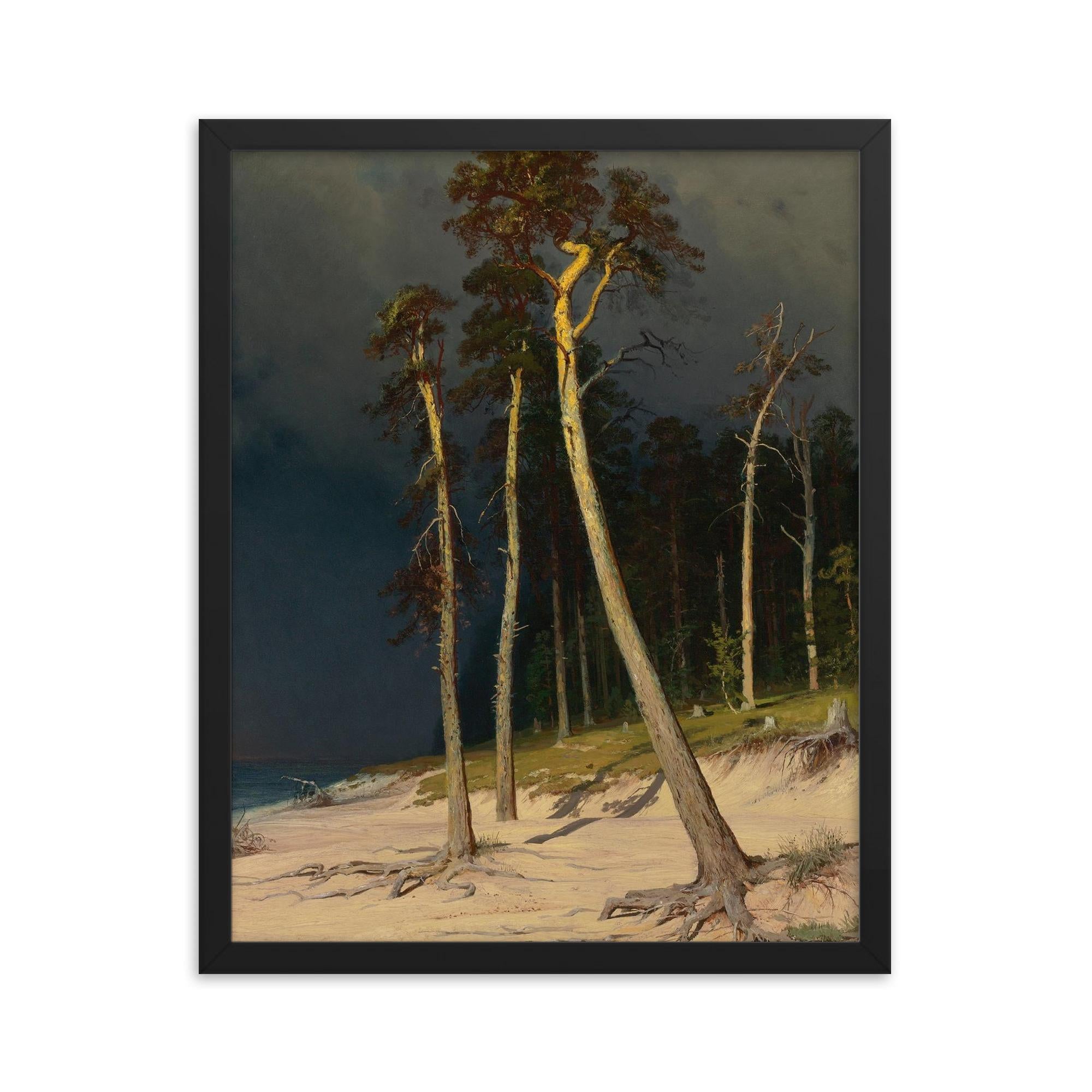 Elevate your living space with the timeless beauty of "Sandy Coastline" by Ivan Ivanovich Shishkin, artfully captured in this stunning framed print.