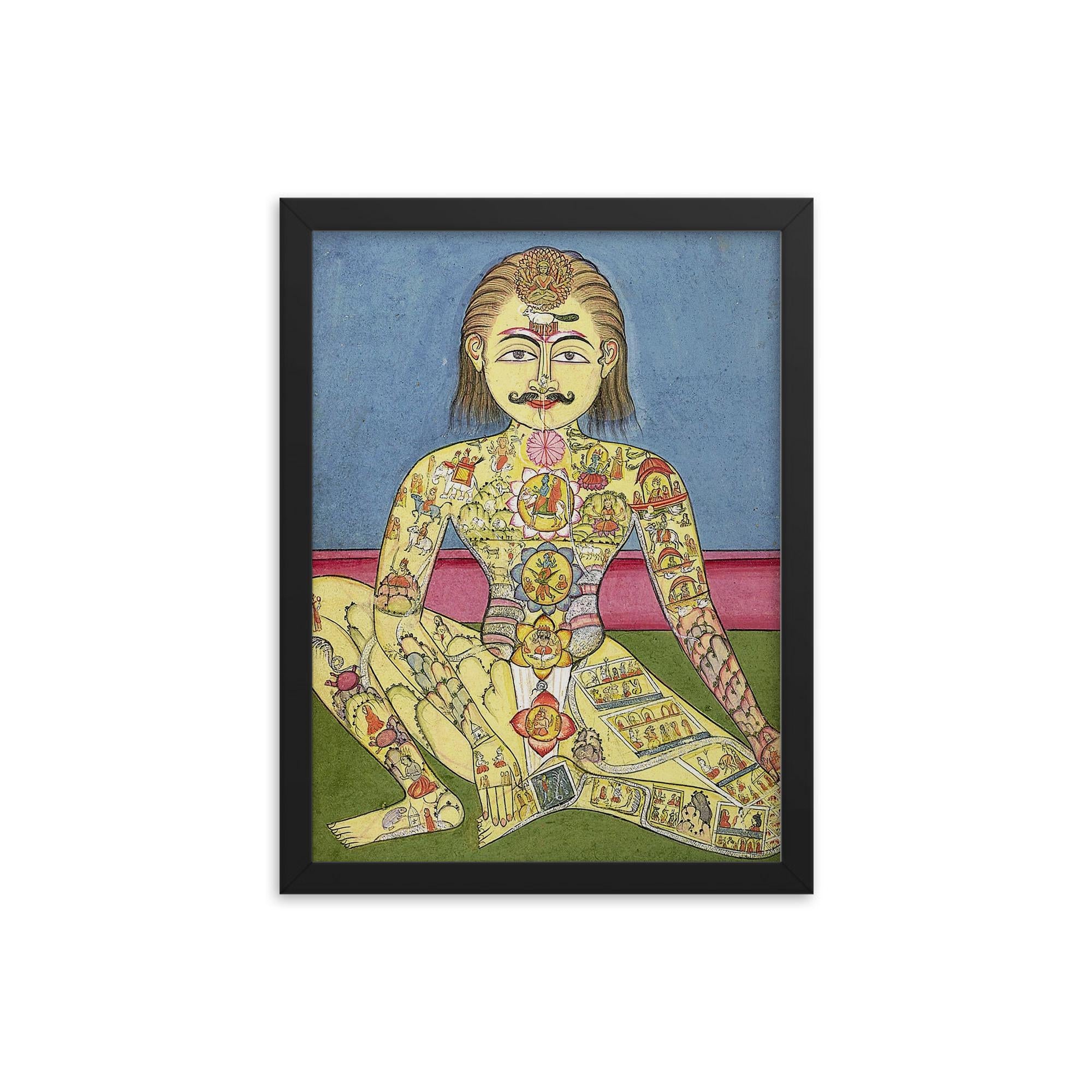 Sapta Chakra Kundalini Yoga Framed Print 1899 Vintage Spiritual Wall Art for Meditation & Home Decor