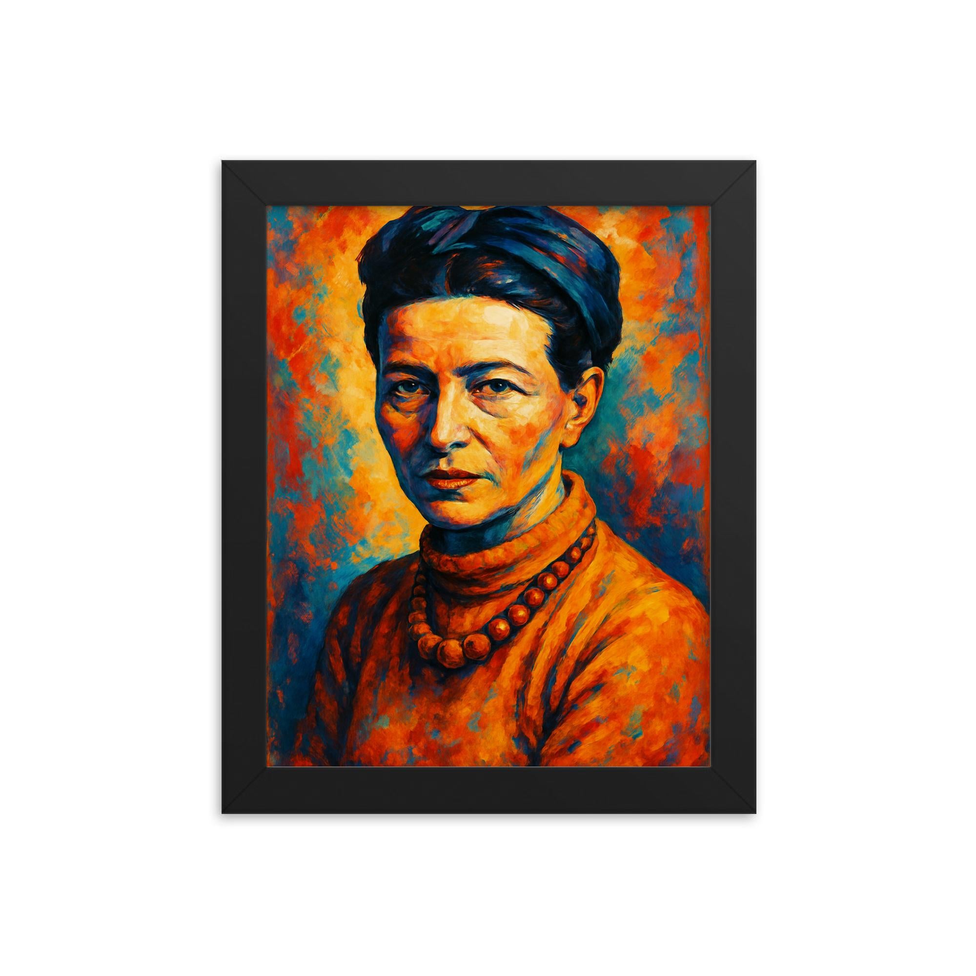 Elevate your space with this stunning framed print of Simone de Beauvoir—an iconic tribute to one of the most influential intellectuals of the 20th century.