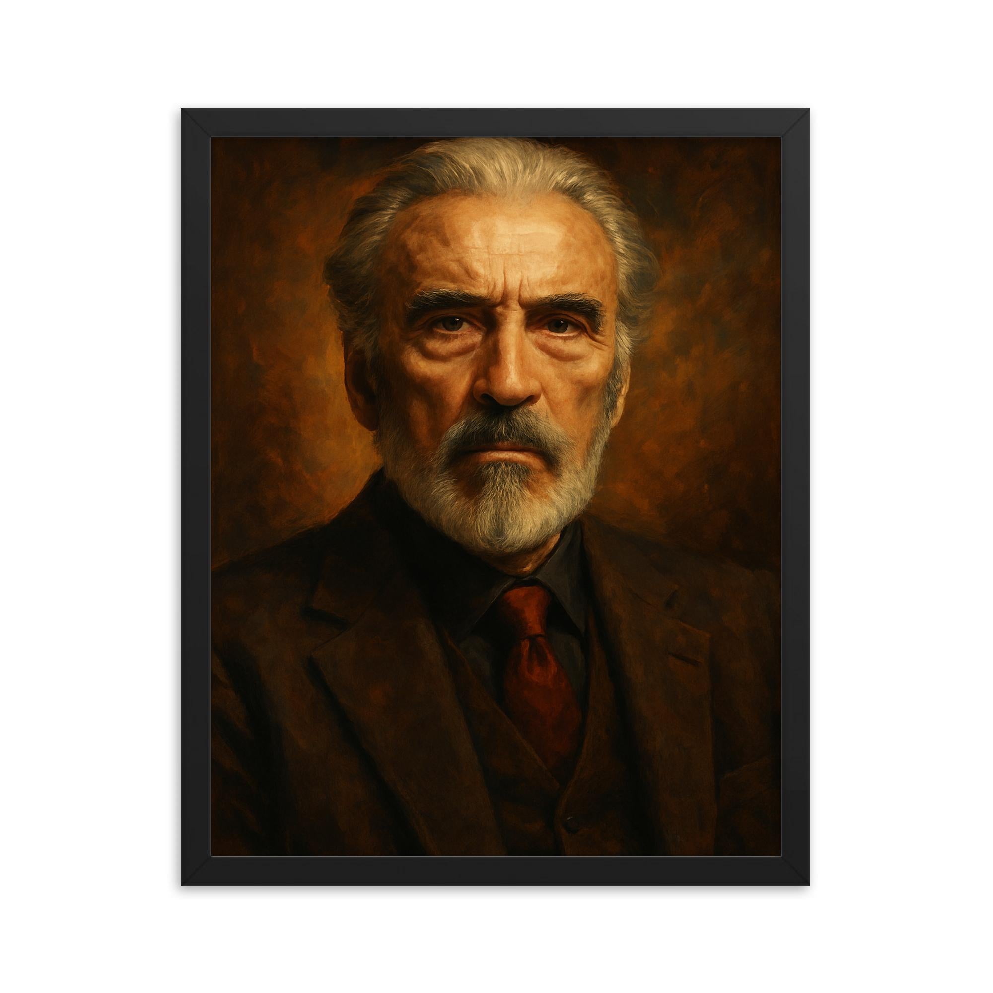 Elevate your space with this stunning framed print of Sir Christopher Lee, a timeless tribute to one of cinema’s most iconic legends.