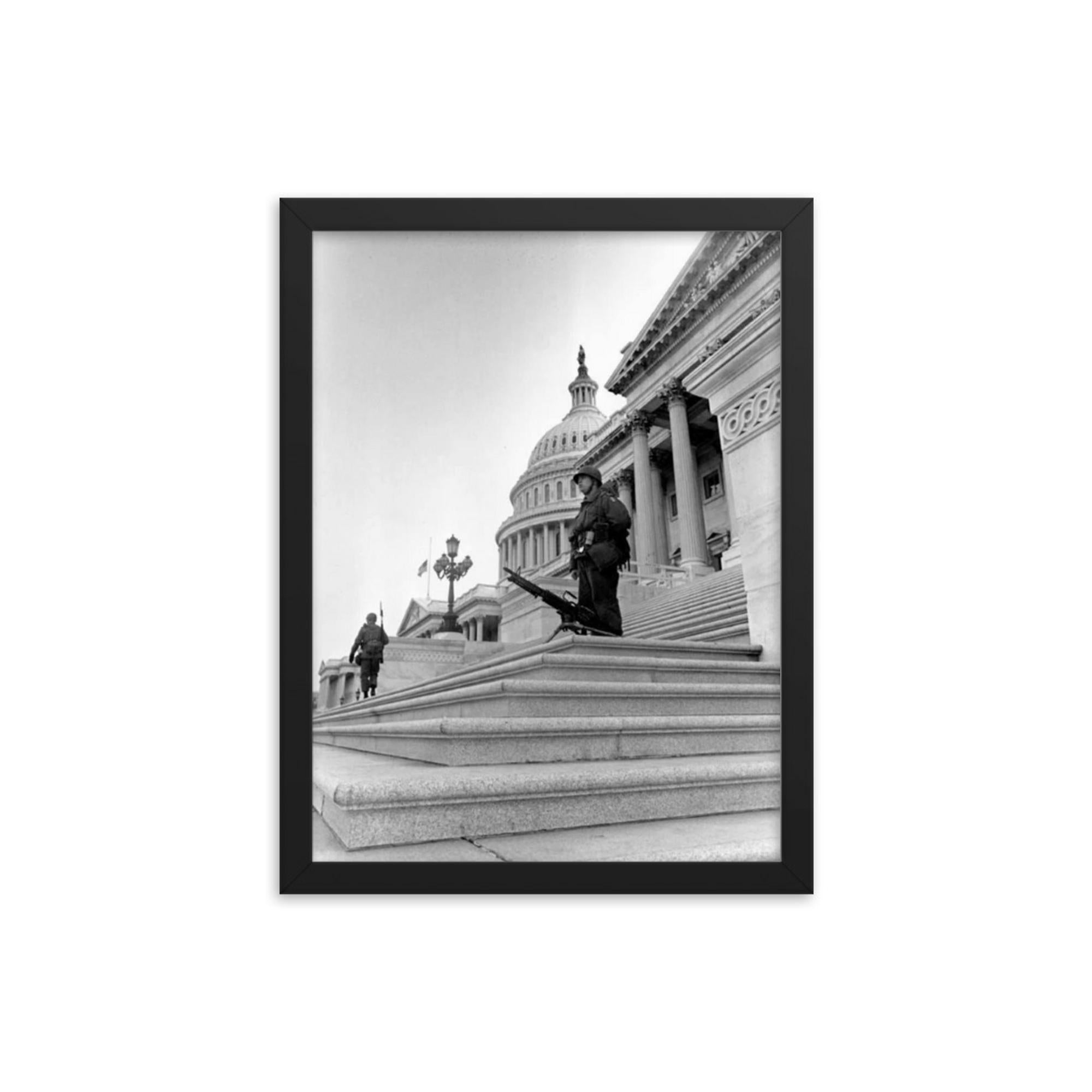 Transform your space with a powerful piece of history captured in this striking framed print of the Soldier at the U.S. Capitol during the Martin Luther King Jr. assassination riots, April 1968.