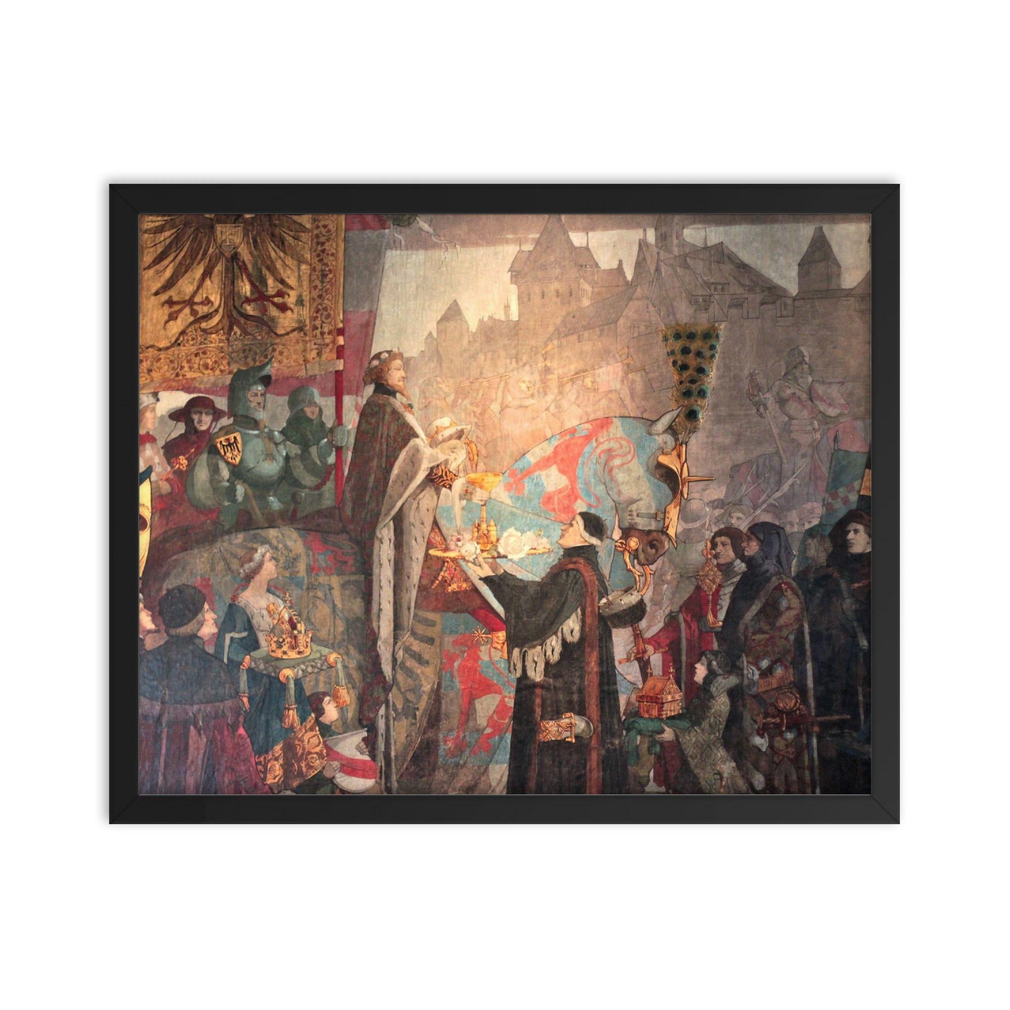 This exquisite piece of history captures a monumental moment with artistic finesse — a masterpiece that invites you to explore the depths of medieval European heritage from the comfort of your home or office.