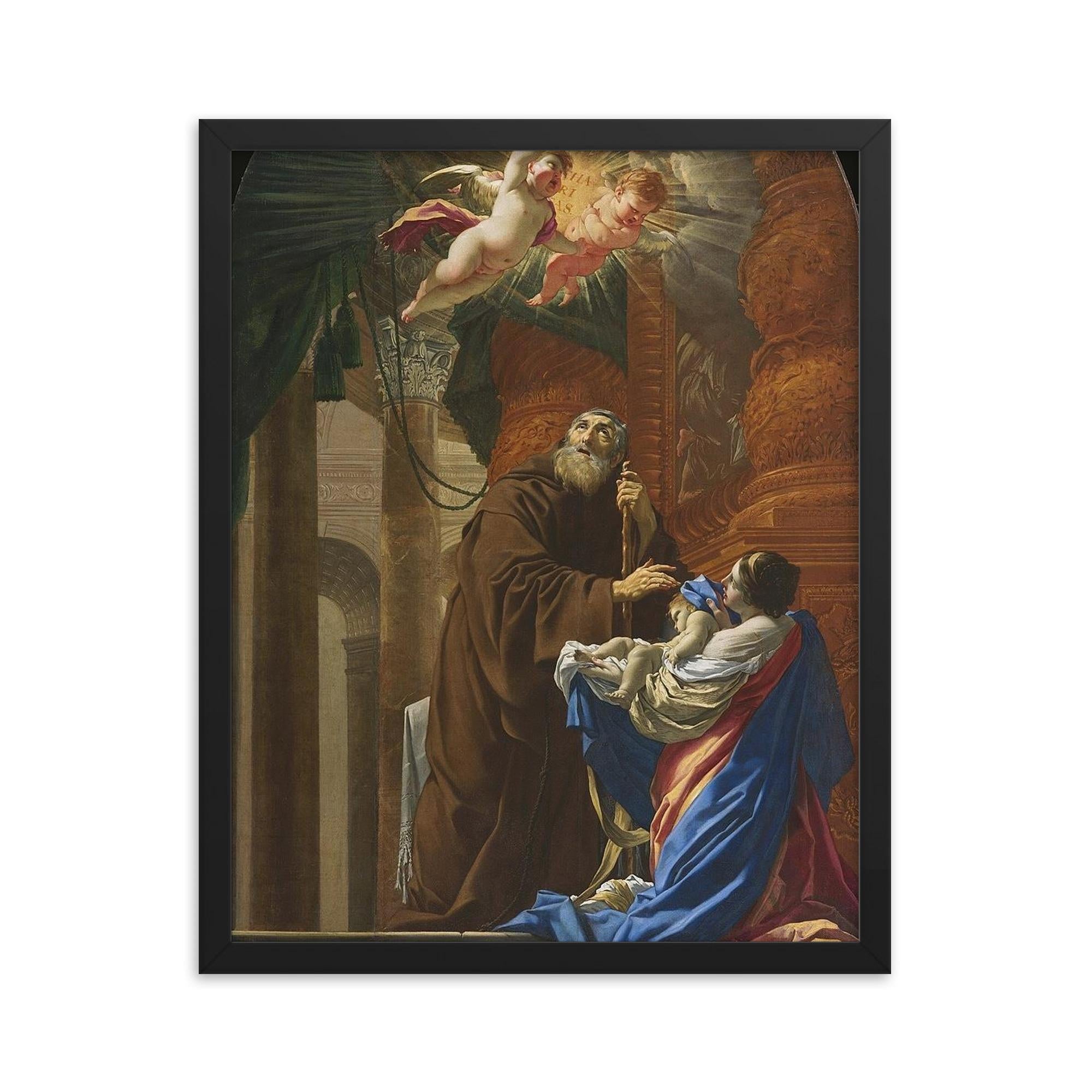 Introducing our premium framed print of "St Francis of Paola Resuscitating a Child" by Simon Vouet—a masterpiece that inspires reflection, hope, and conversation wherever it hangs.