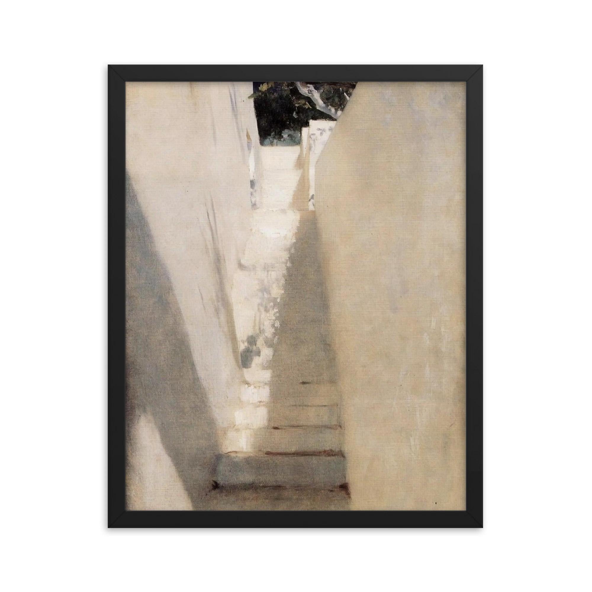 Framed Staircase in Capri Wall Art by John Singer Sargent – Elegant Coastal Fine Art Print for Home & Office Decor