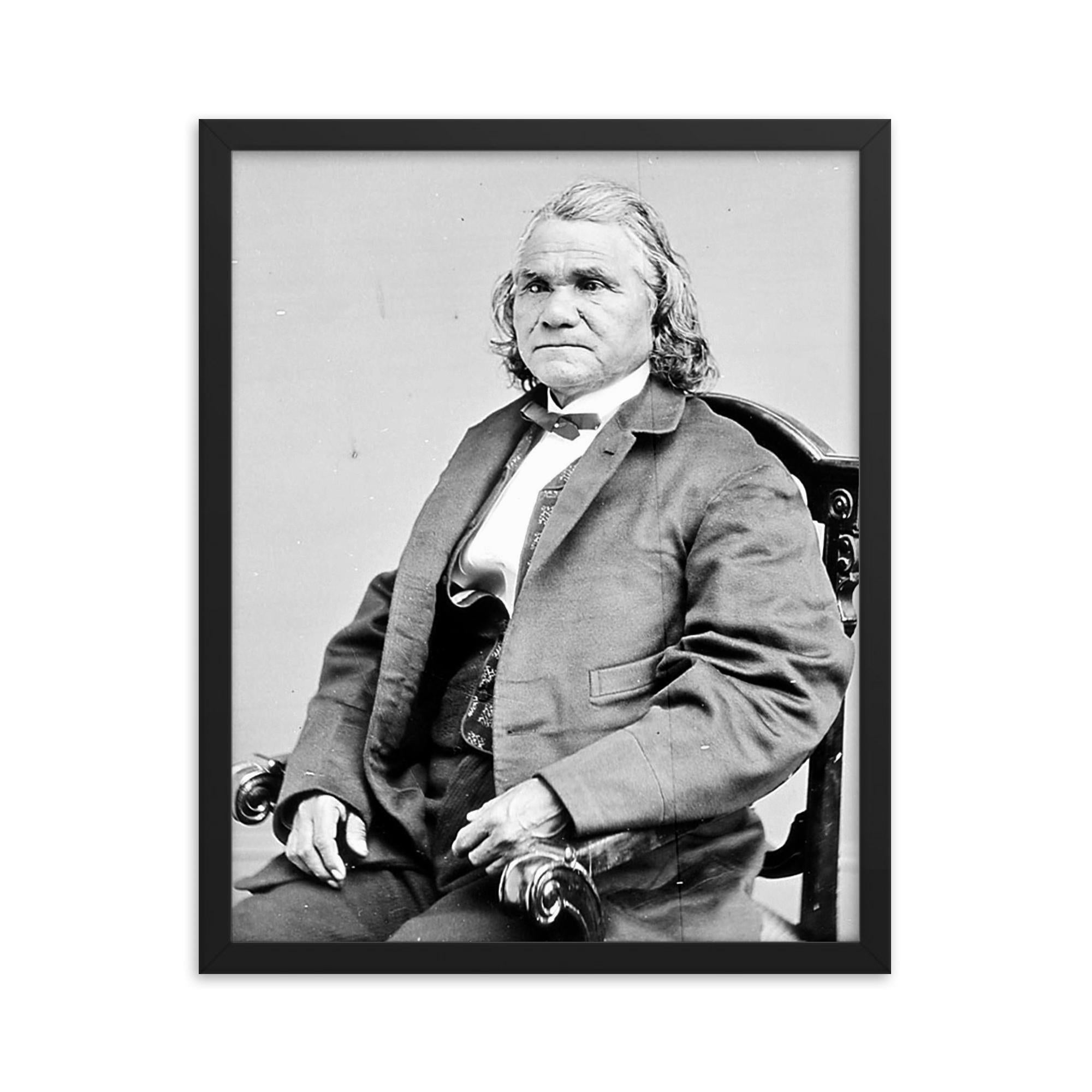 Celebrate a significant figure in history with this framed print of Stand Watie, an emblem of resilience and leadership. Perfect for both history enthusiasts and art collectors, this piece adds depth and narrative to any space, serving as a conversation starter and a tribute to a remarkable legacy.