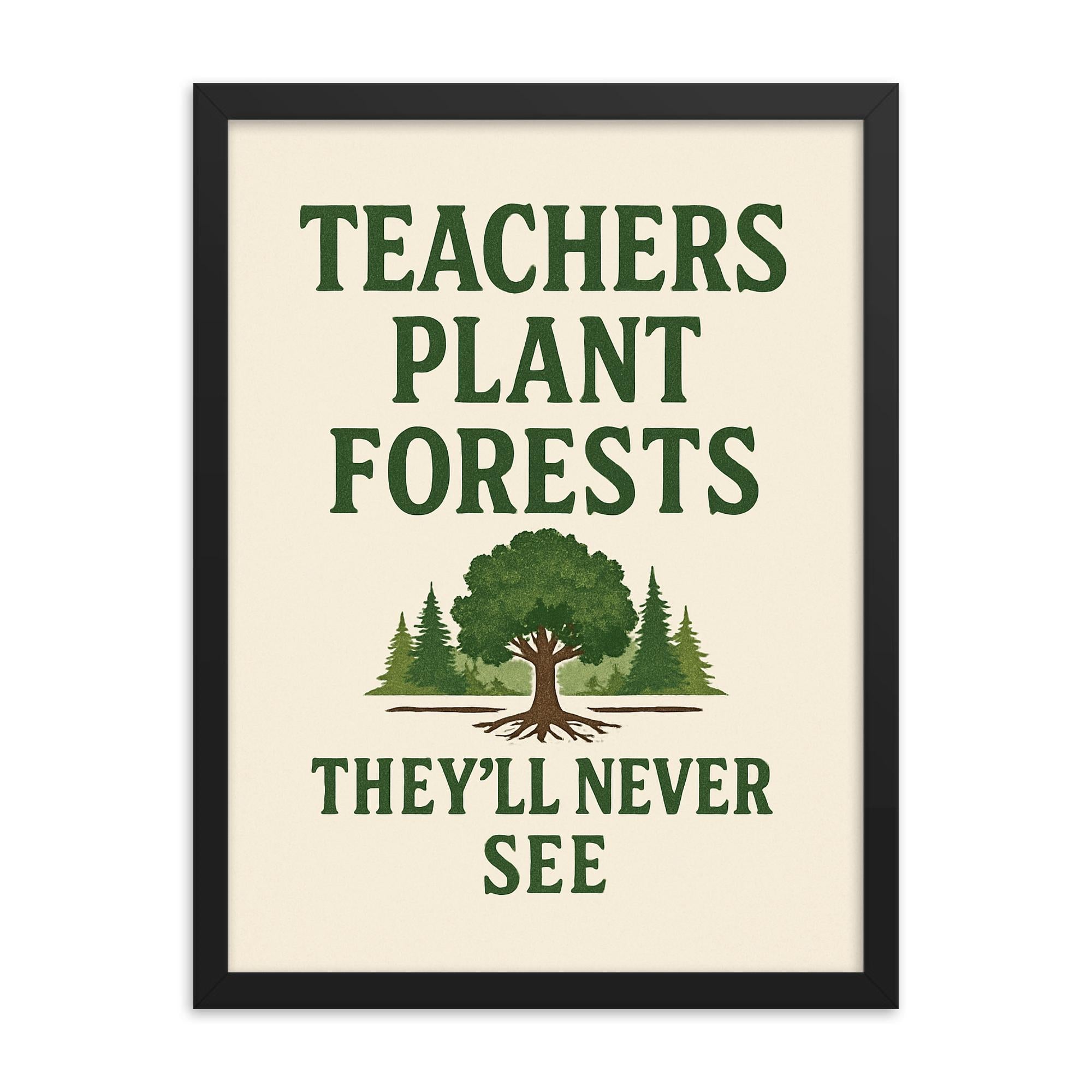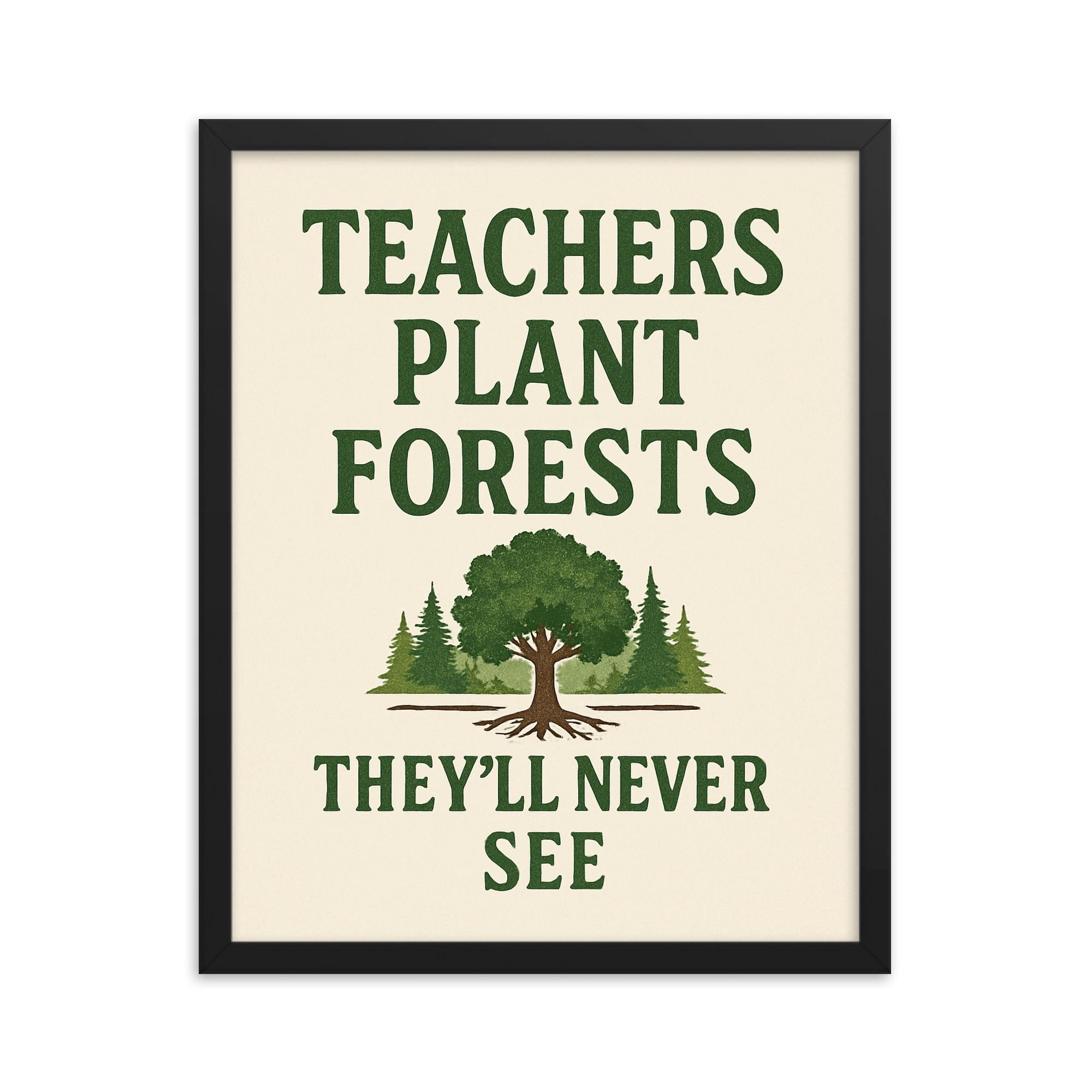 Teachers Plant Forests They’ll Never See Inspirational Framed Print – Motivational Teacher Wall Art Gift, Ready to Hang Classroom Decor