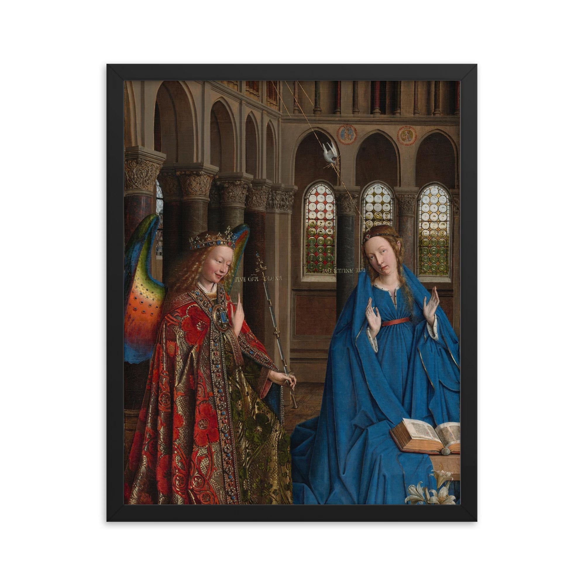 Elevate your home or office with a timeless masterpiece: our meticulously crafted framed print of The Annunciation by Jan van Eyck, c. 1436.