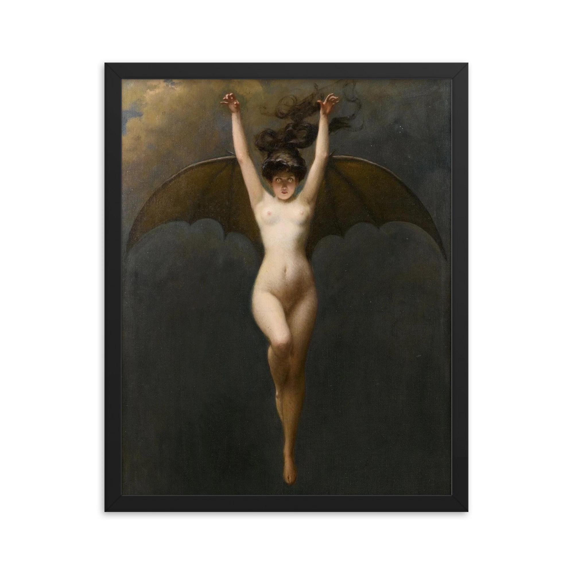 Framed Bat Woman Wall Art by Albert Joseph Penot 1890 – Vintage Gothic Décor, Unique Fine Art Print for Home or Office