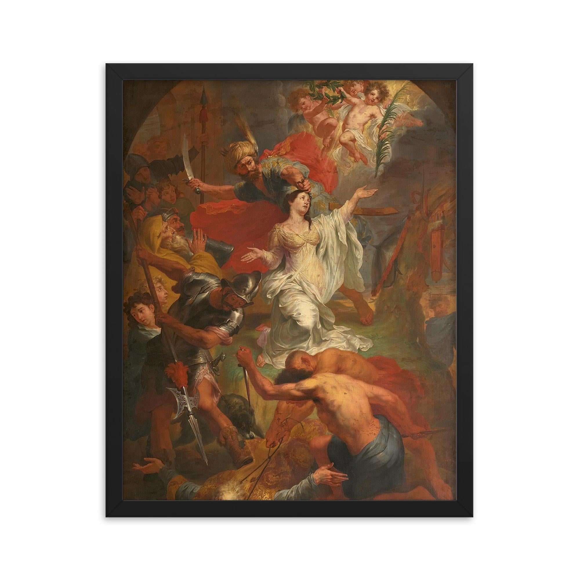 Transform your space with the powerful narrative and striking artistry of The Beheading of St Dymphna by Godfried Maes—now available as a premium framed print, ready to elevate any wall.