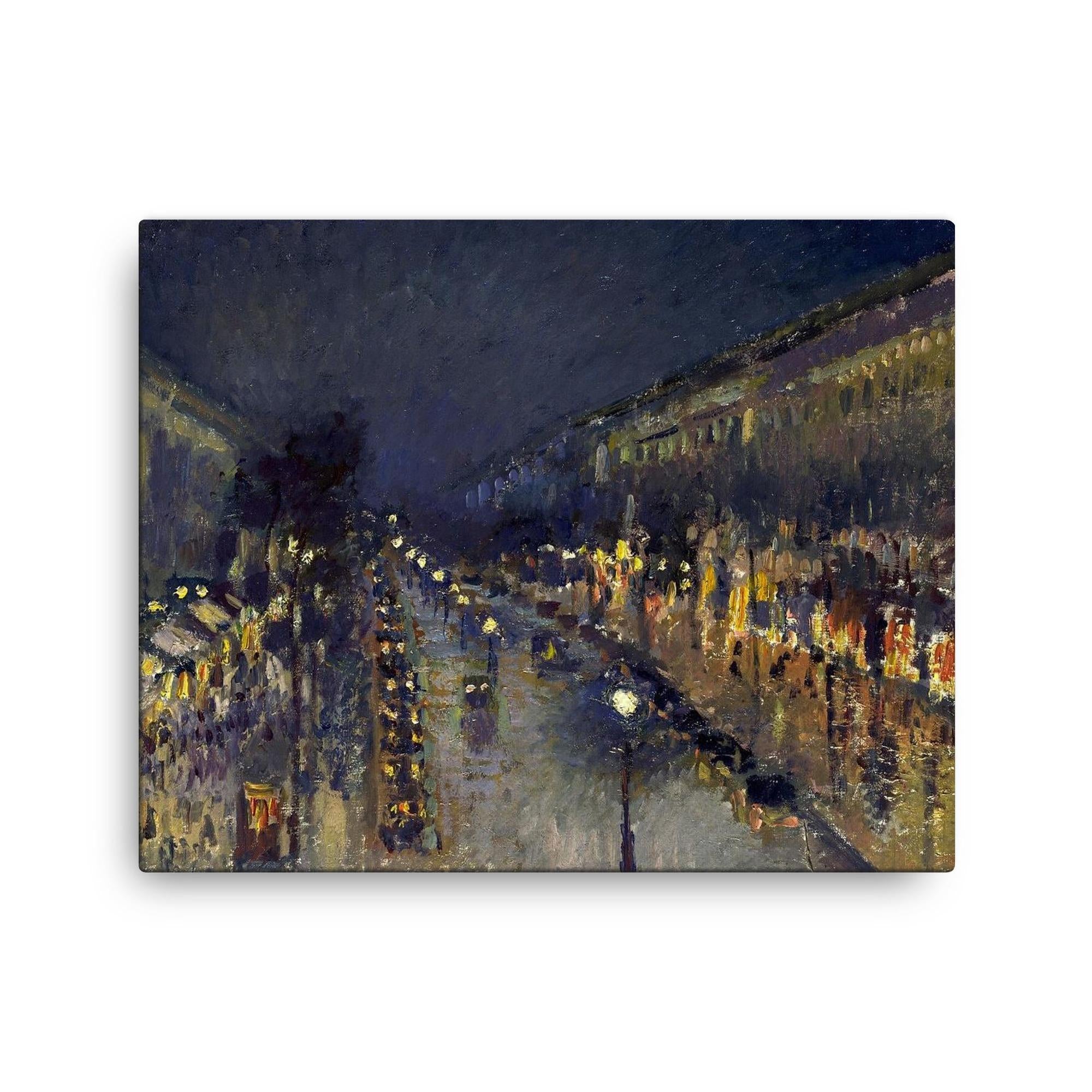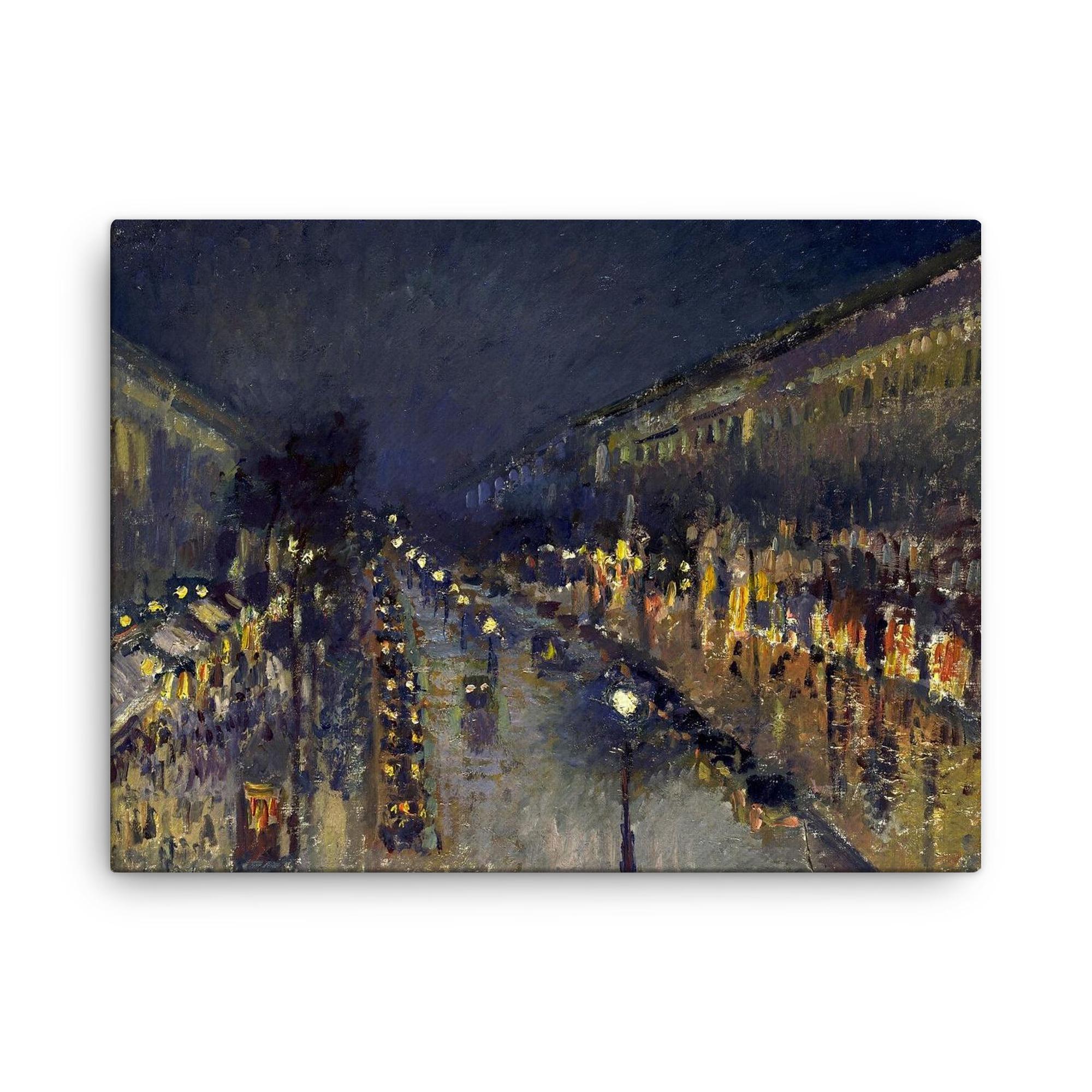 Elevate your living space with a timeless masterpiece — The Boulevard Montmartre at Night by Camille Pissarro, beautifully reproduced on premium canvas.