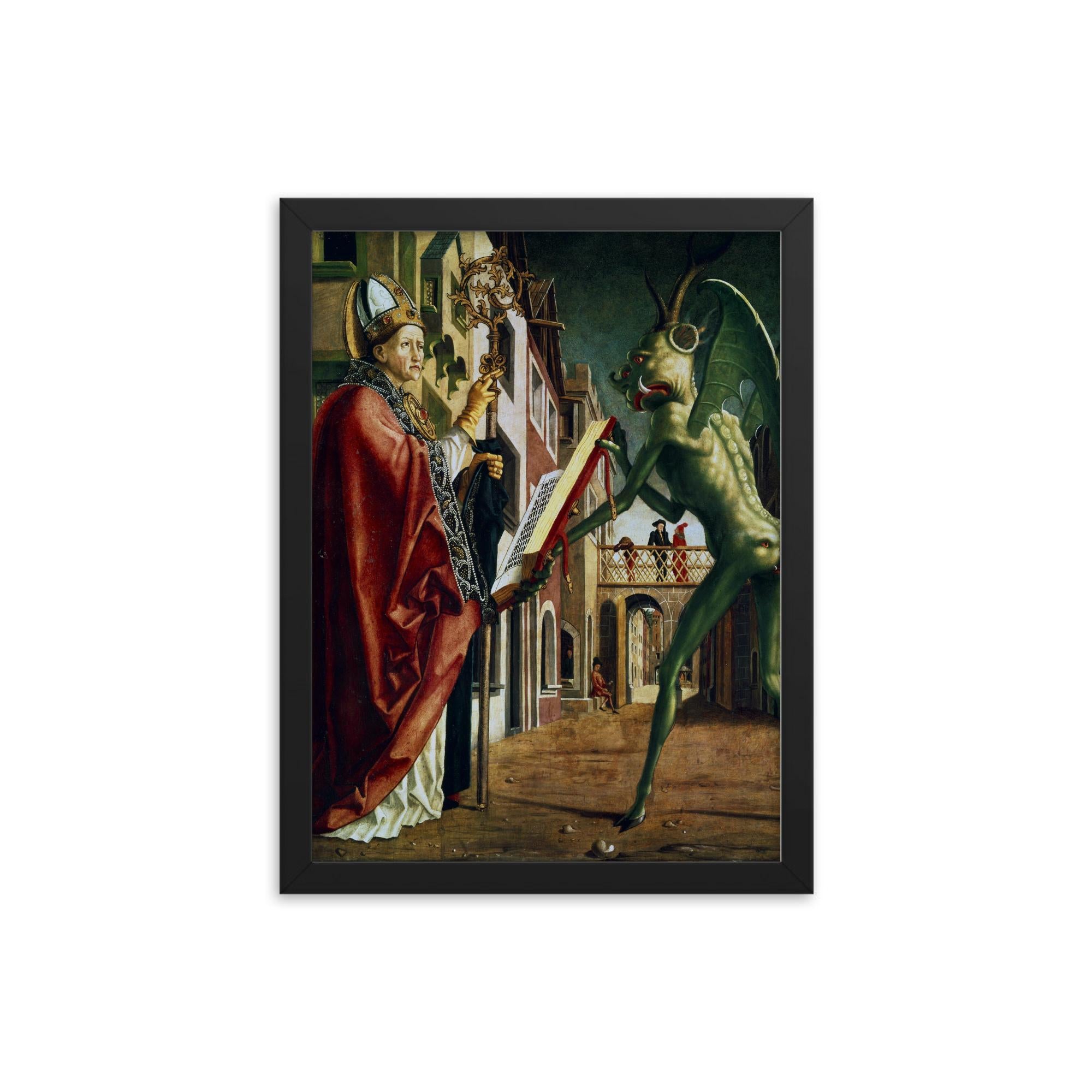 Framed Print of Michael Pacher’s The Devil Presenting St. Augustine Wall Art – Gothic Religious Masterpiece for Home & Office Decor