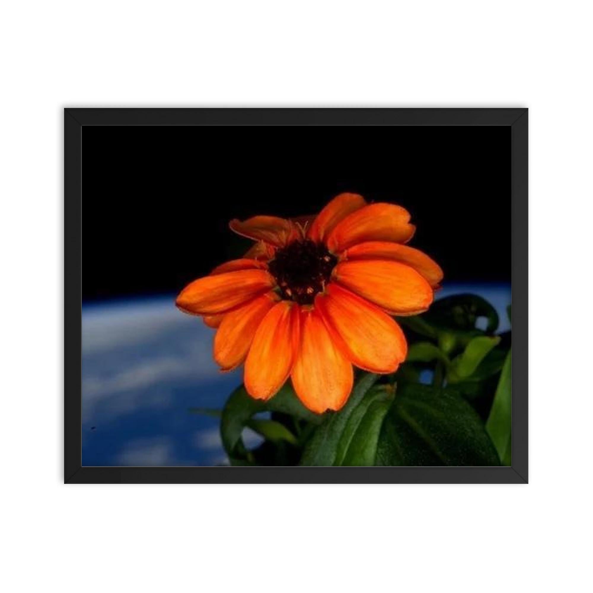 First Flower Grown in Space Framed Print – Unique NASA-Inspired Wall Art, Botanical Space Décor, Perfect Gift for Science Lovers