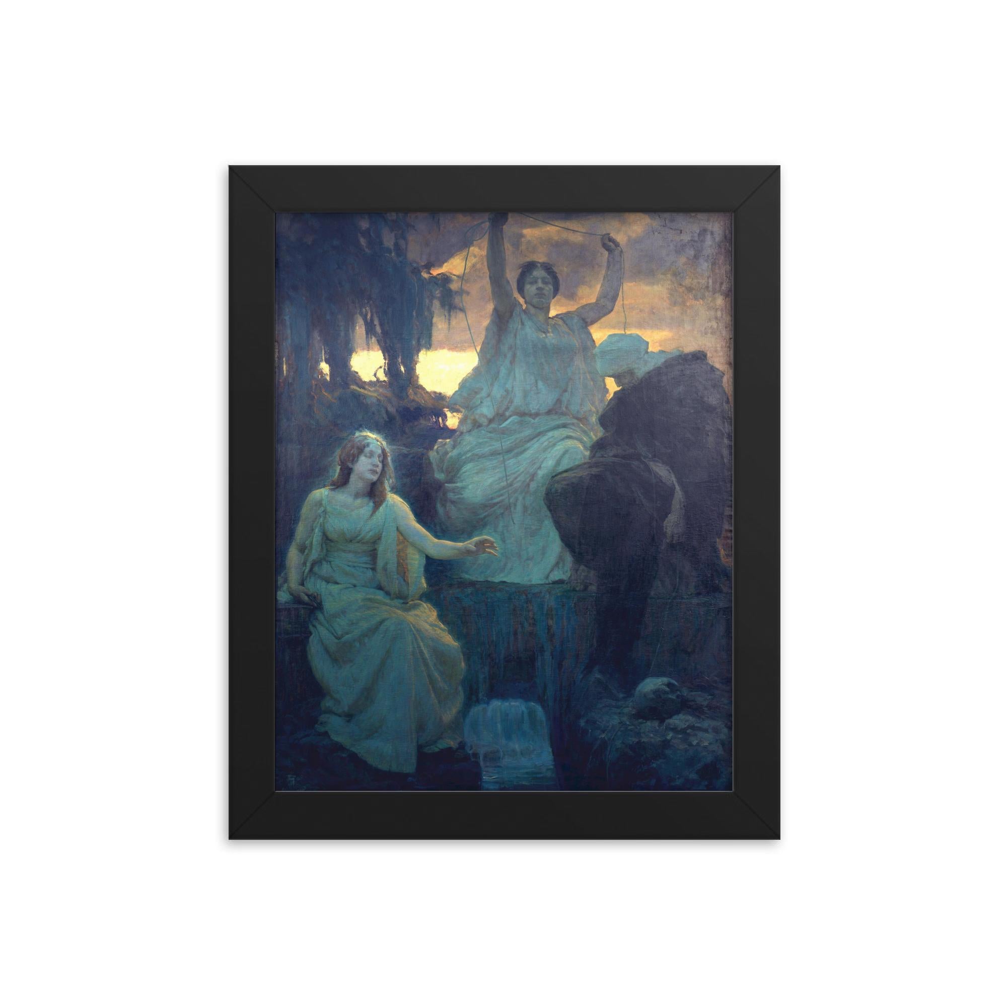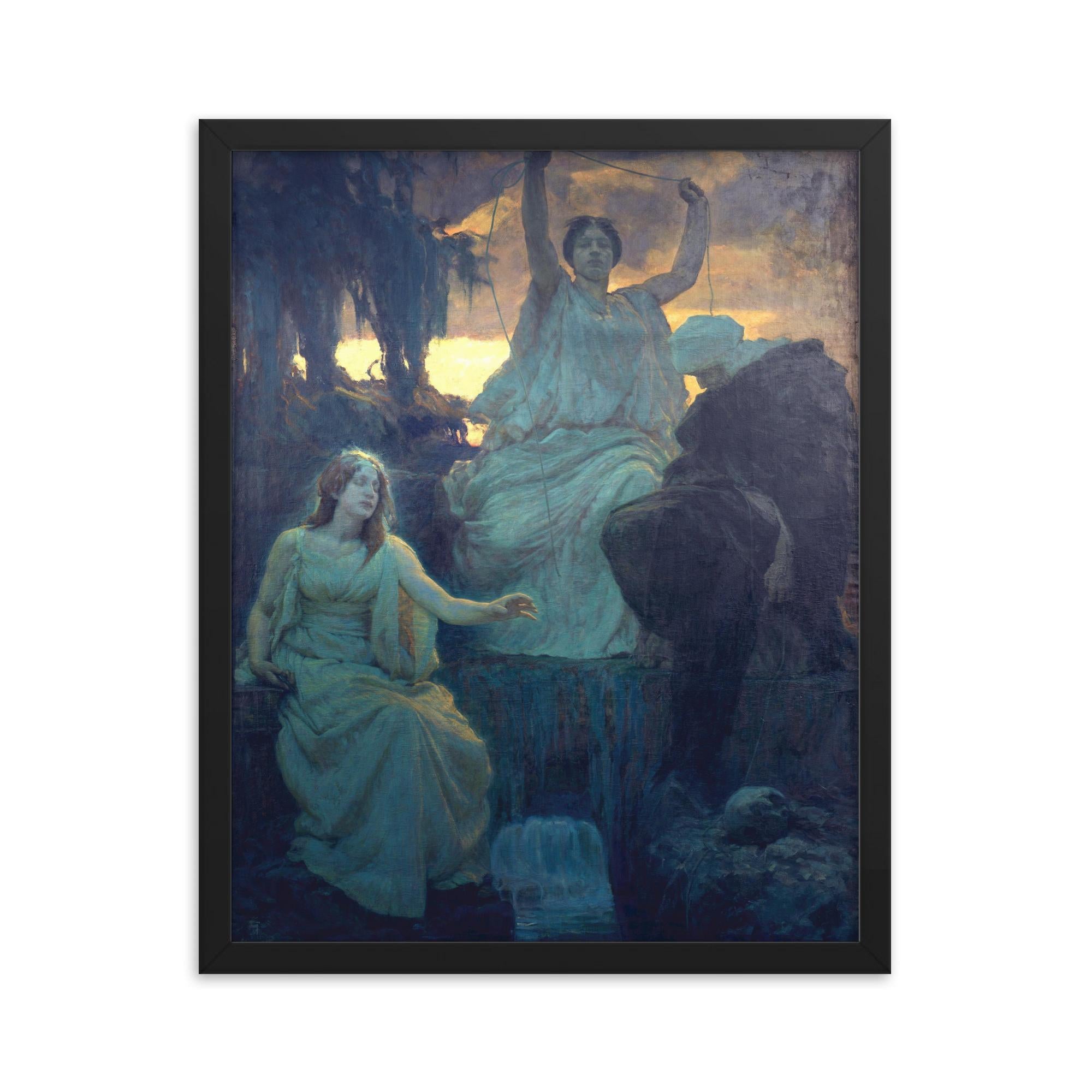 Discover a masterpiece that will transform your space: "The Norns by Alois Delug, 1894" – now available as a stunning framed print, ready to elevate your wall décor with captivating sophistication.