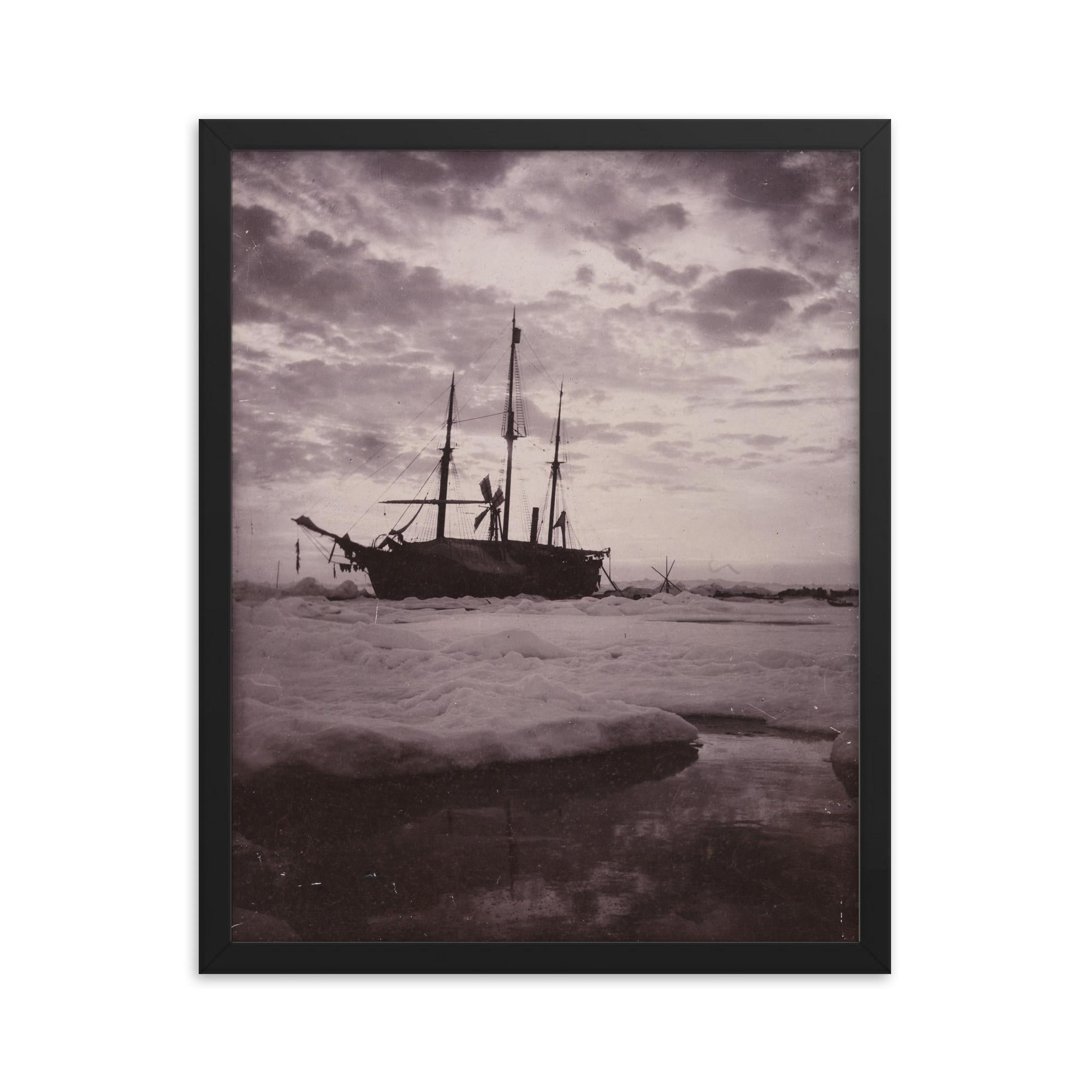 Bring a breathtaking chapter of exploration into your space with this stunning framed print of "The Norwegian Arctic Exploration Ship Fram in Ice, 1894." A true celebration of bravery and adventure, this wall art instantly transports you to the heart of Arctic discovery—a must-have for those who cherish history, resilience, and the call of the unknown.