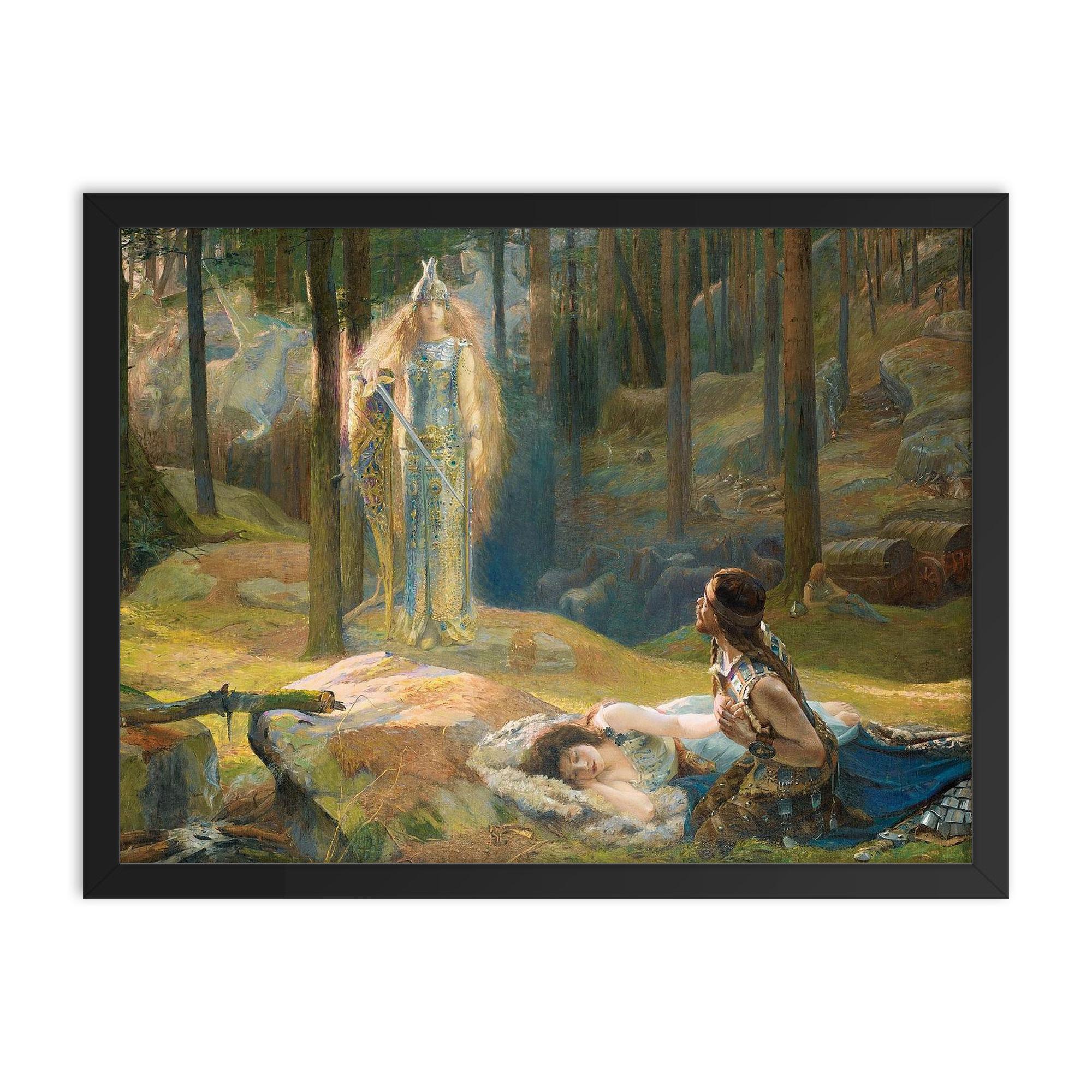 Elevate your living space with an exquisite framed print of The Revelation - Brunnhilde Discovering Sieglinde and Siegmund by Gaston Bussiere.