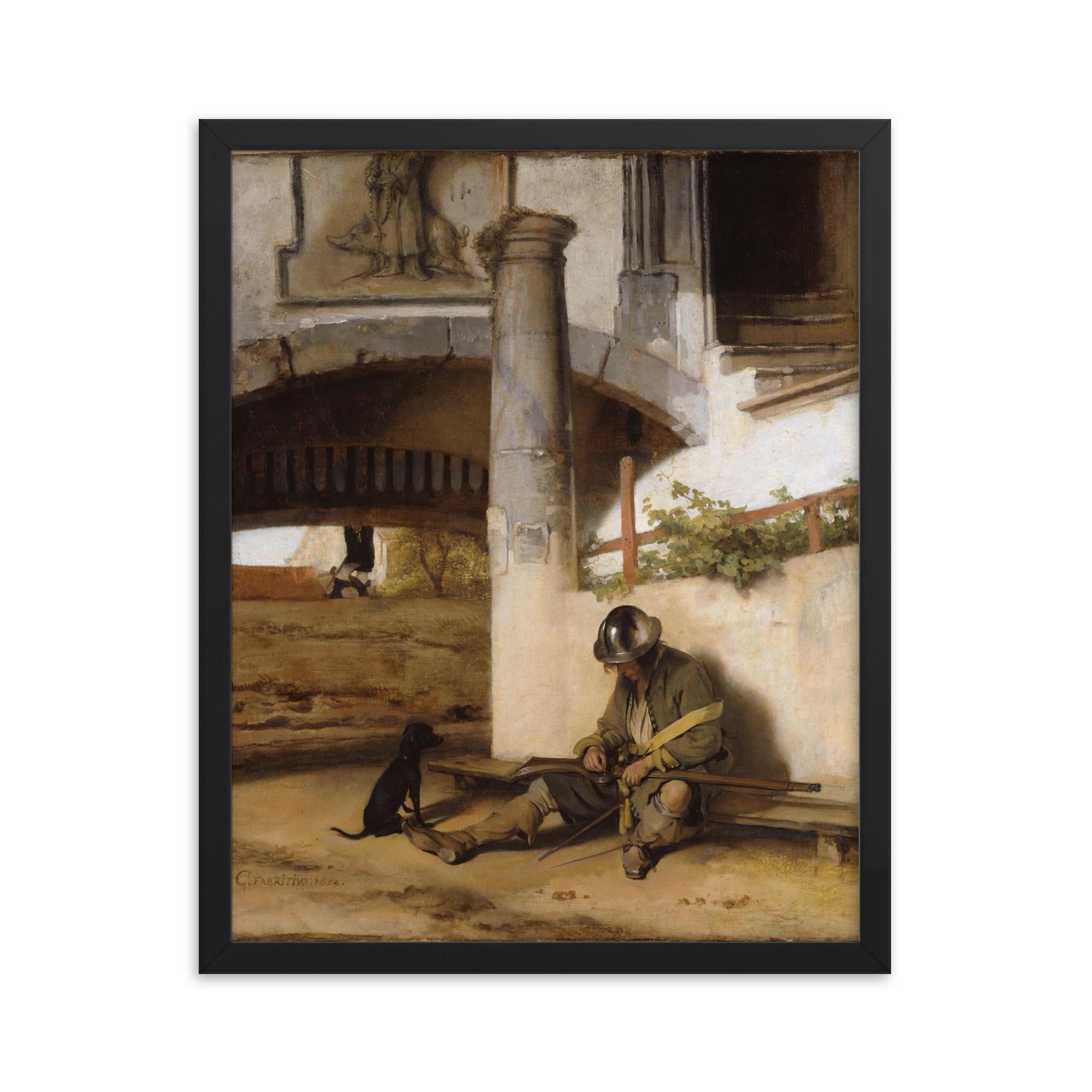 Elevate your living space with timeless elegance through this exquisite framed print of The Sentry by Carel Fabritius.
