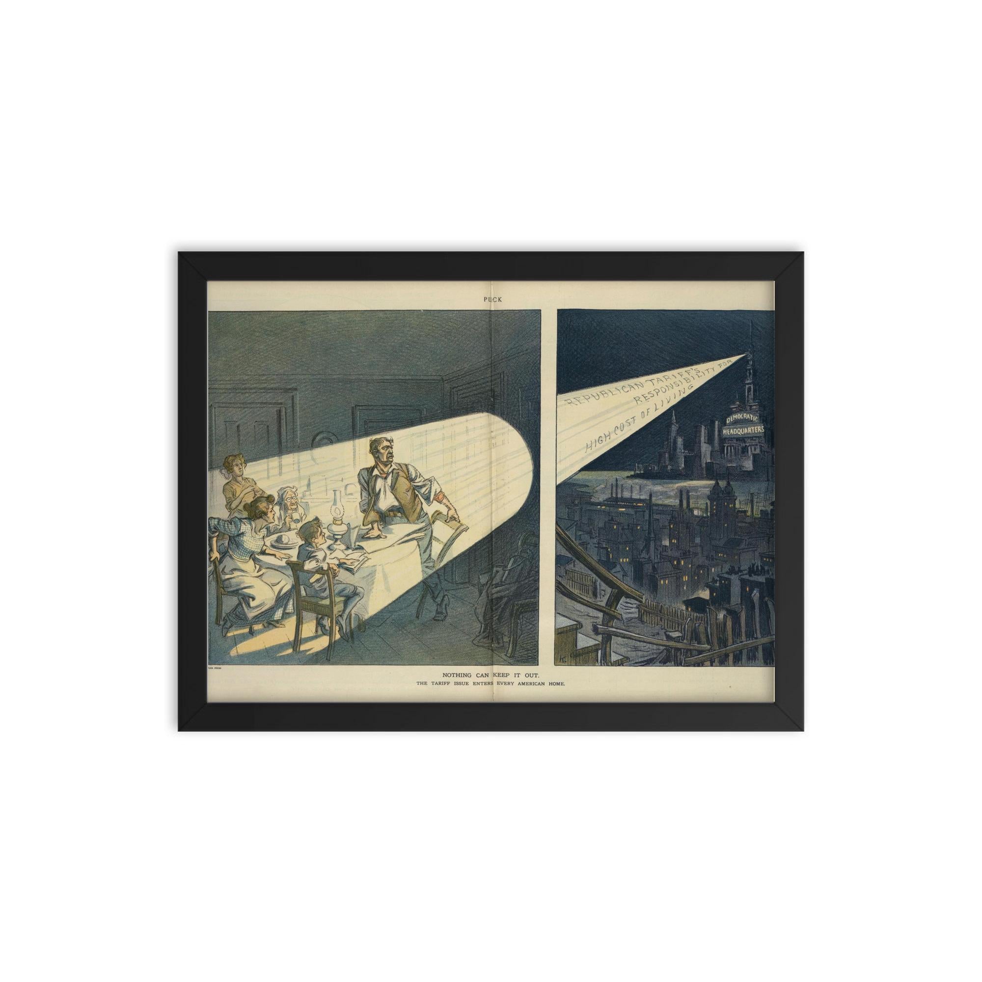 Transport yourself to the heart of American history with this stunning framed print of "The Tariff Issue Enters Every American Home, May 22, 1912." This striking piece of wall art is more than just decor—it’s a conversation starter and a meaningful tribute to a pivotal moment in our nation’s story.