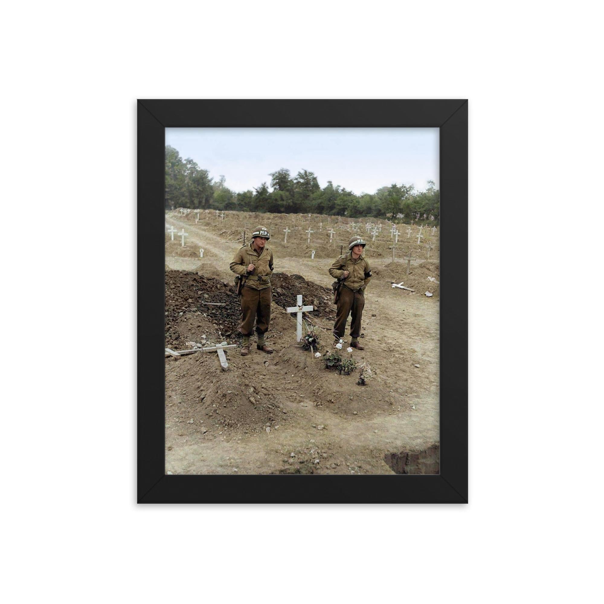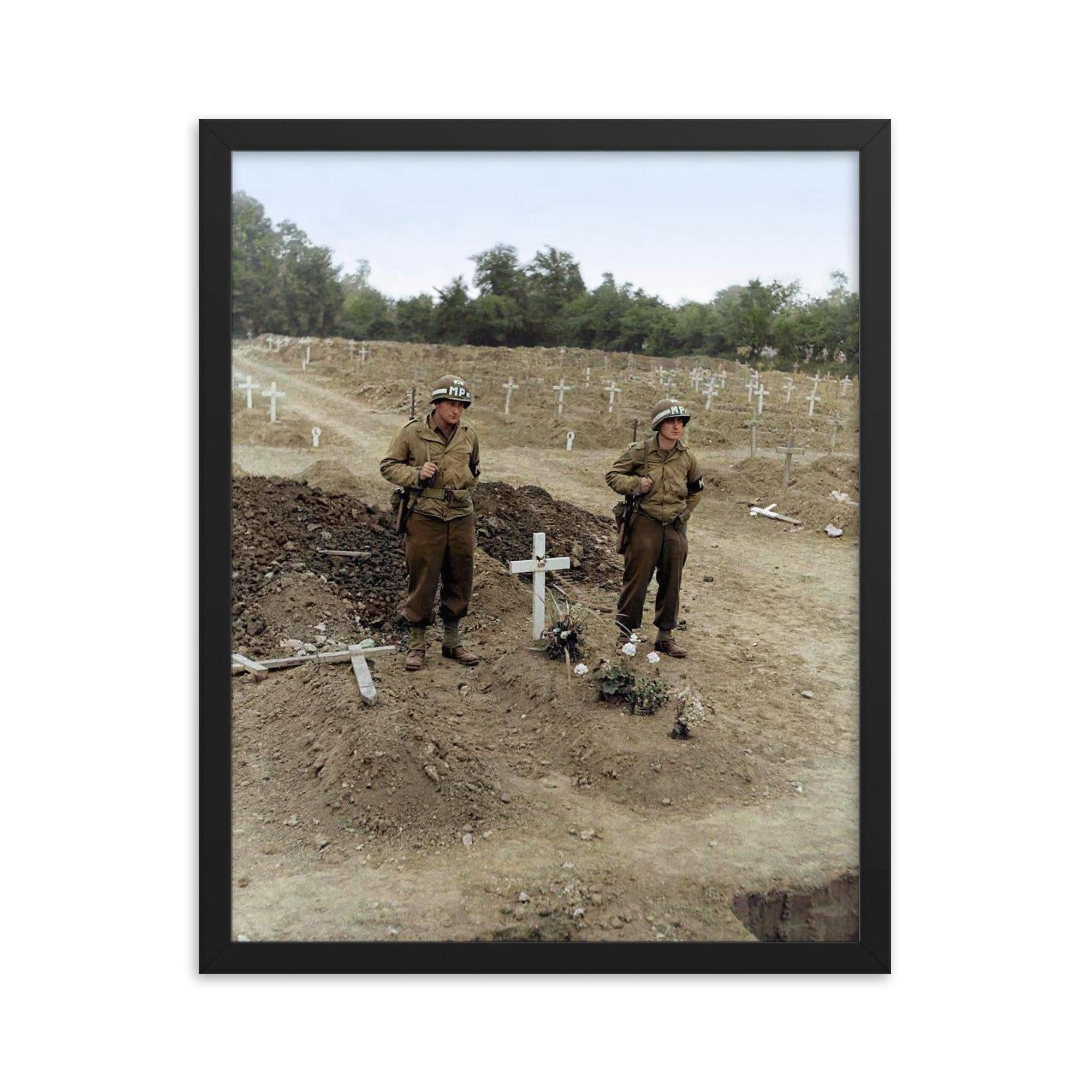 Transform your living space with a striking piece of historical artistry: the framed print of The Temporary Grave of Theodore Roosevelt in Normandy, July 1944.