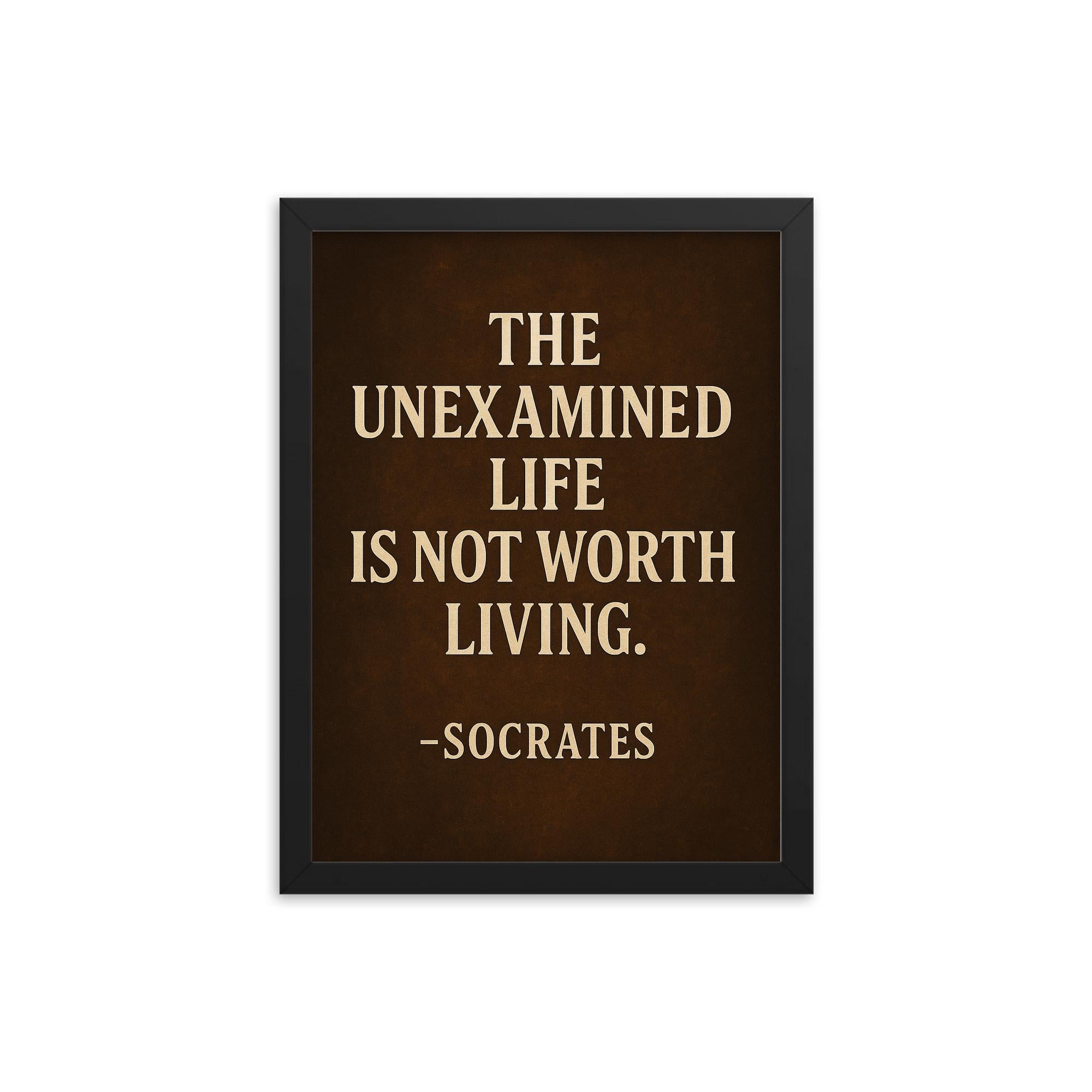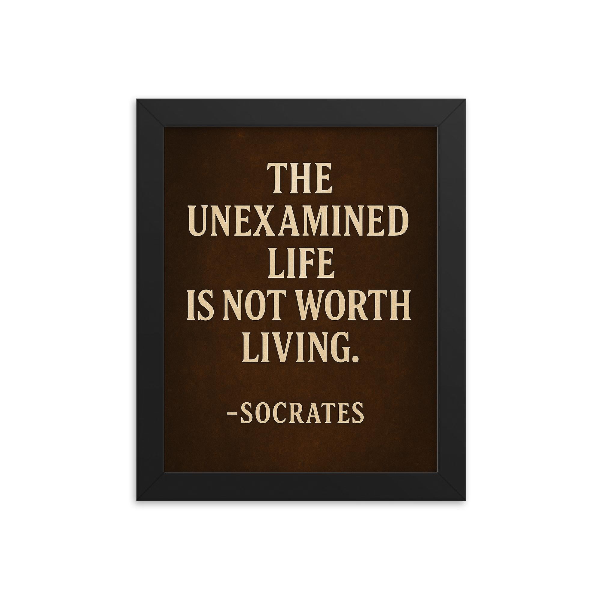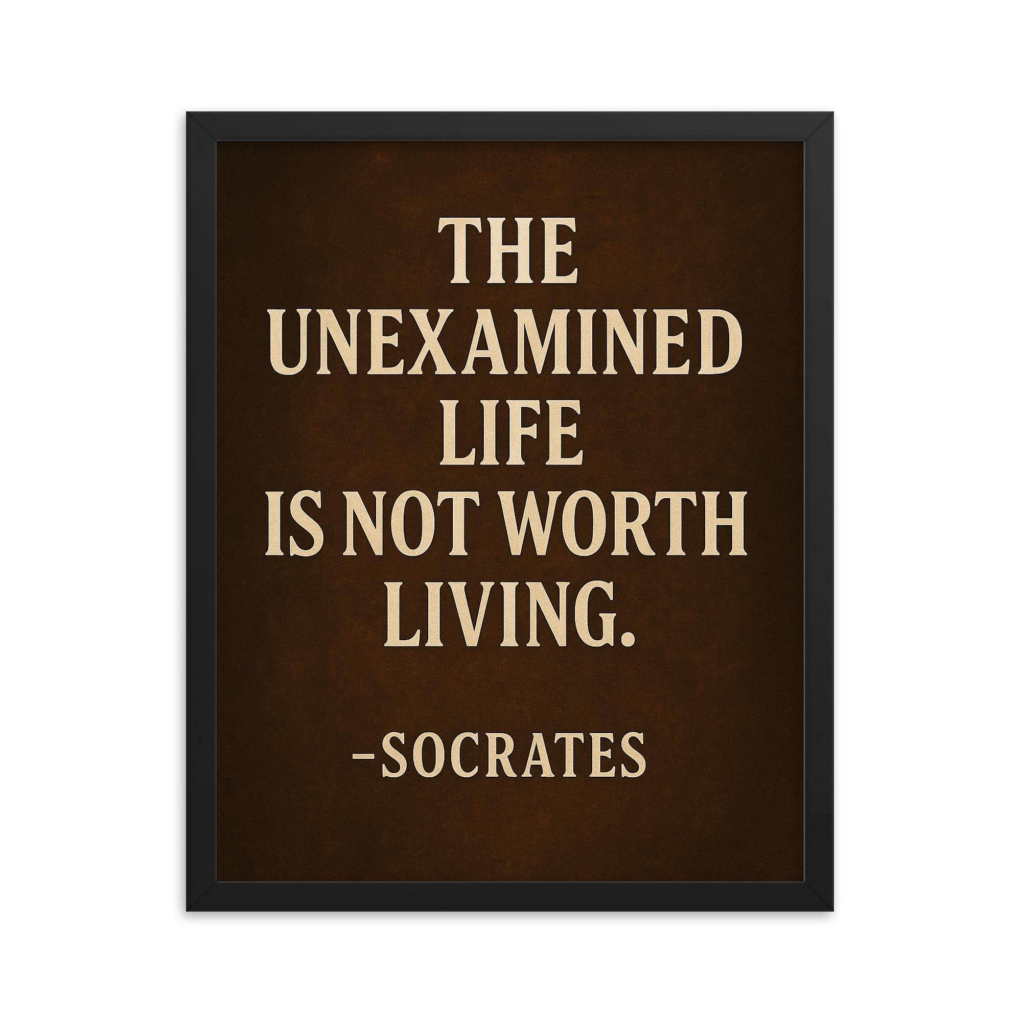 Transform your space with wisdom that endures. Our exclusive framed print featuring the timeless words of Socrates — The unexamined life is not worth living — is more than just wall art; it’s daily inspiration for those who value depth, reflection, and purpose.