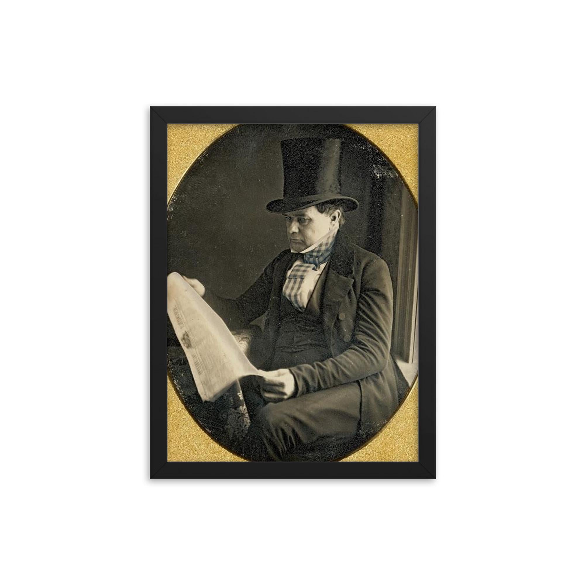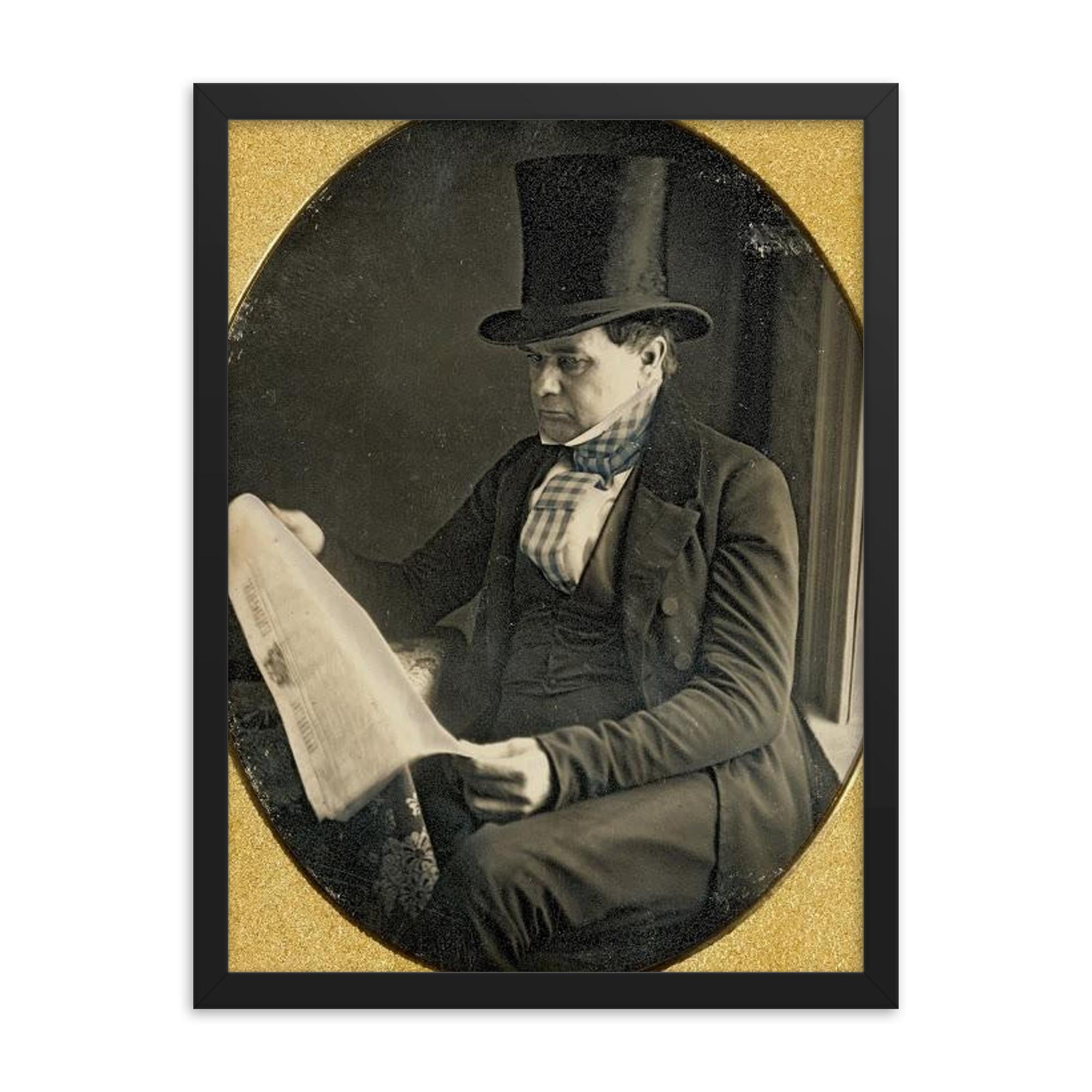 Transform your space with history, elegance, and timeless style—introduce your walls to the "Tinted Portrait of Man Reading Newspaper, 1852" framed print.