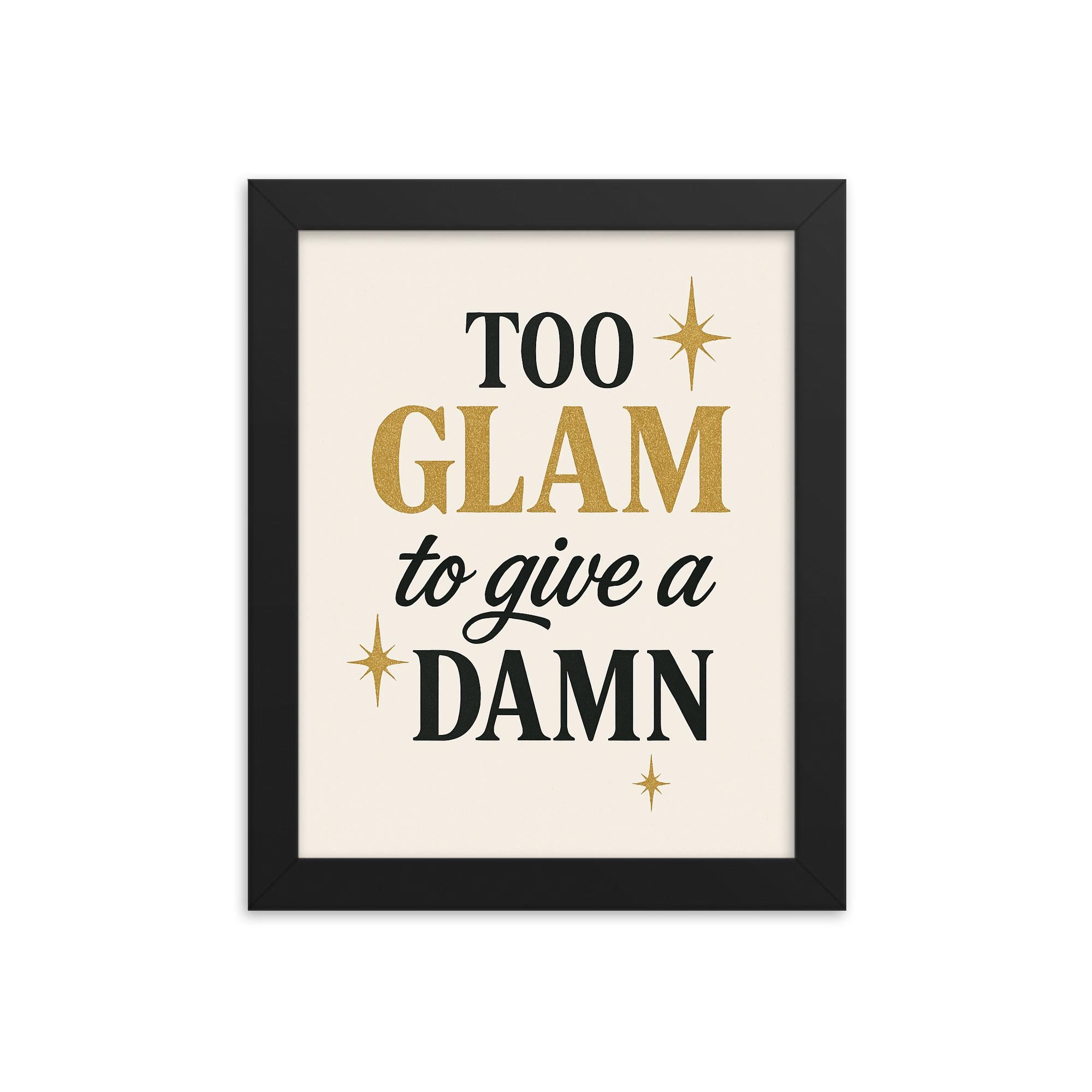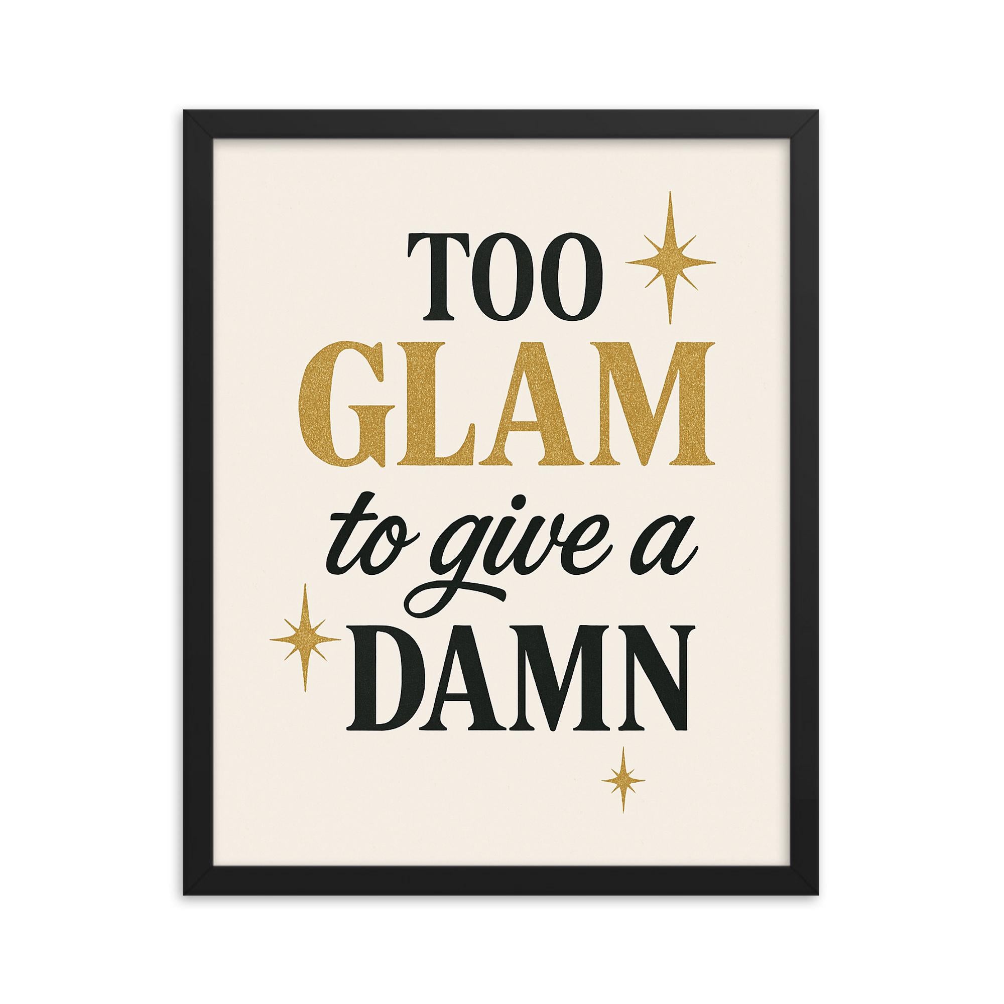 Turn your walls into a statement with the Too glam to give a damn framed print—your shortcut to instant confidence, chic decor, and vibes that never apologize.
