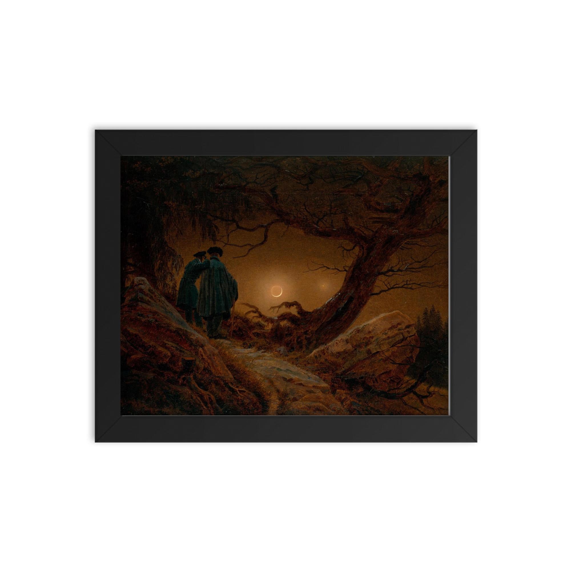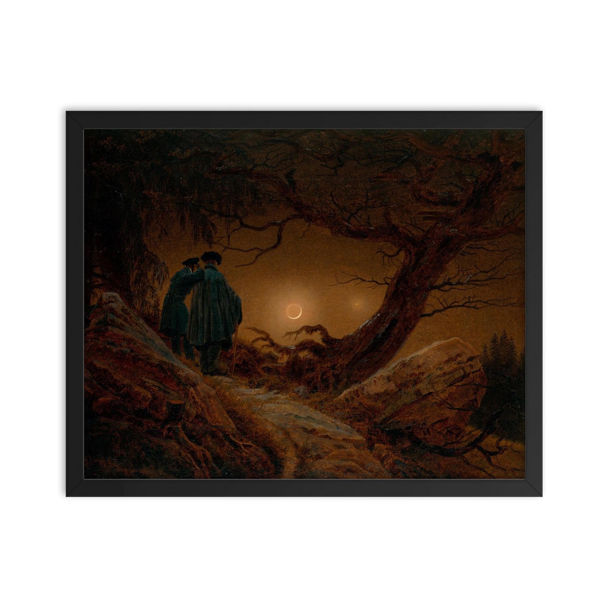 Transform your space with timeless elegance—discover the captivating allure of our framed print of "Two Men Contemplating the Moon" by Caspar David Friedrich, 1820.