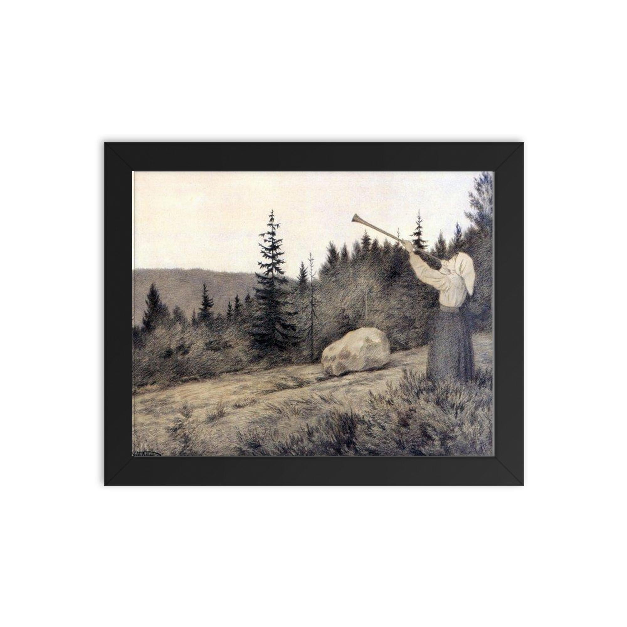 Transform your living space with timeless elegance through the framed print of Up in the Hills by Theodor Kittelsen, 1900.
