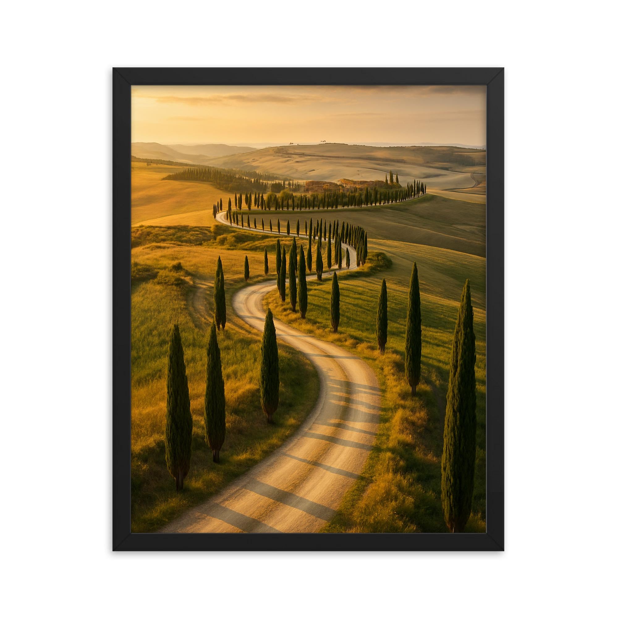 Elevate your walls with the Val d'Orcia Cypress Roads Italy framed print today and bring a piece of Italy’s enchanting landscape into your life with unmatched quality and elegance